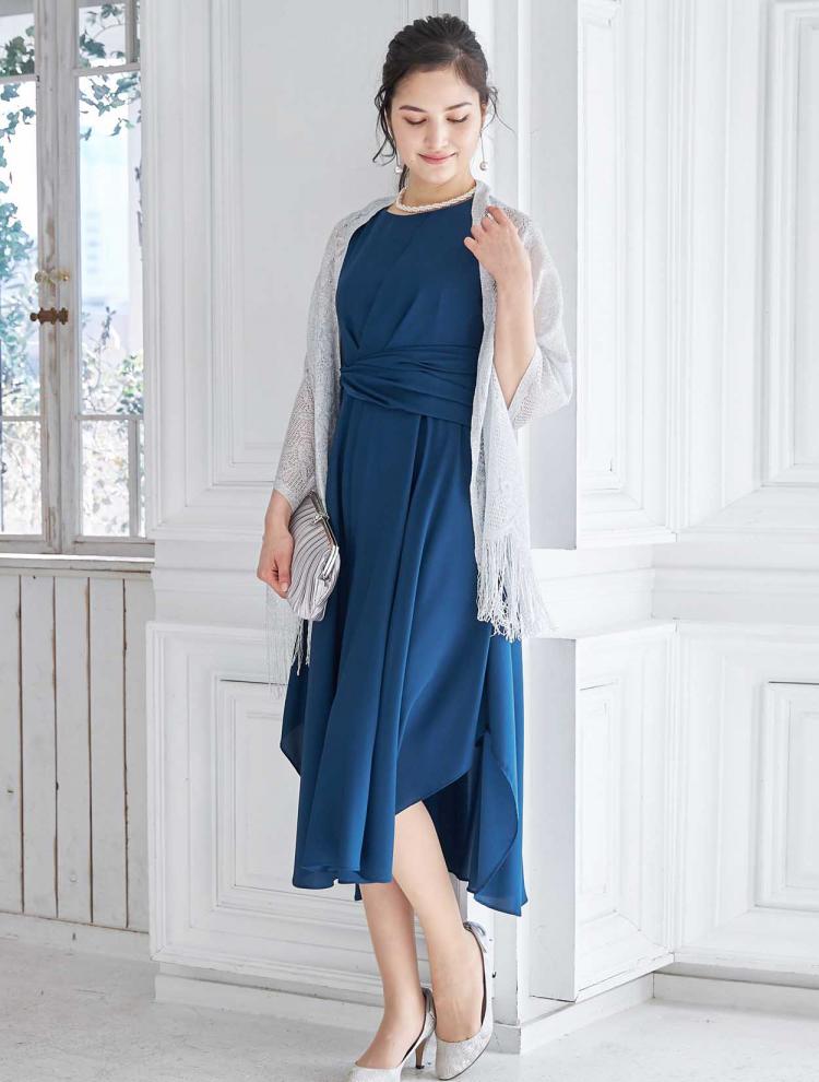 「ジャストウエスト」もしくは「ウエスト位置が調節出来るドレス」は、上半身が詰まりがちな上重心のバランスを良くしてくれます。しっかりウエストマークやくびれを演出できるも重要!