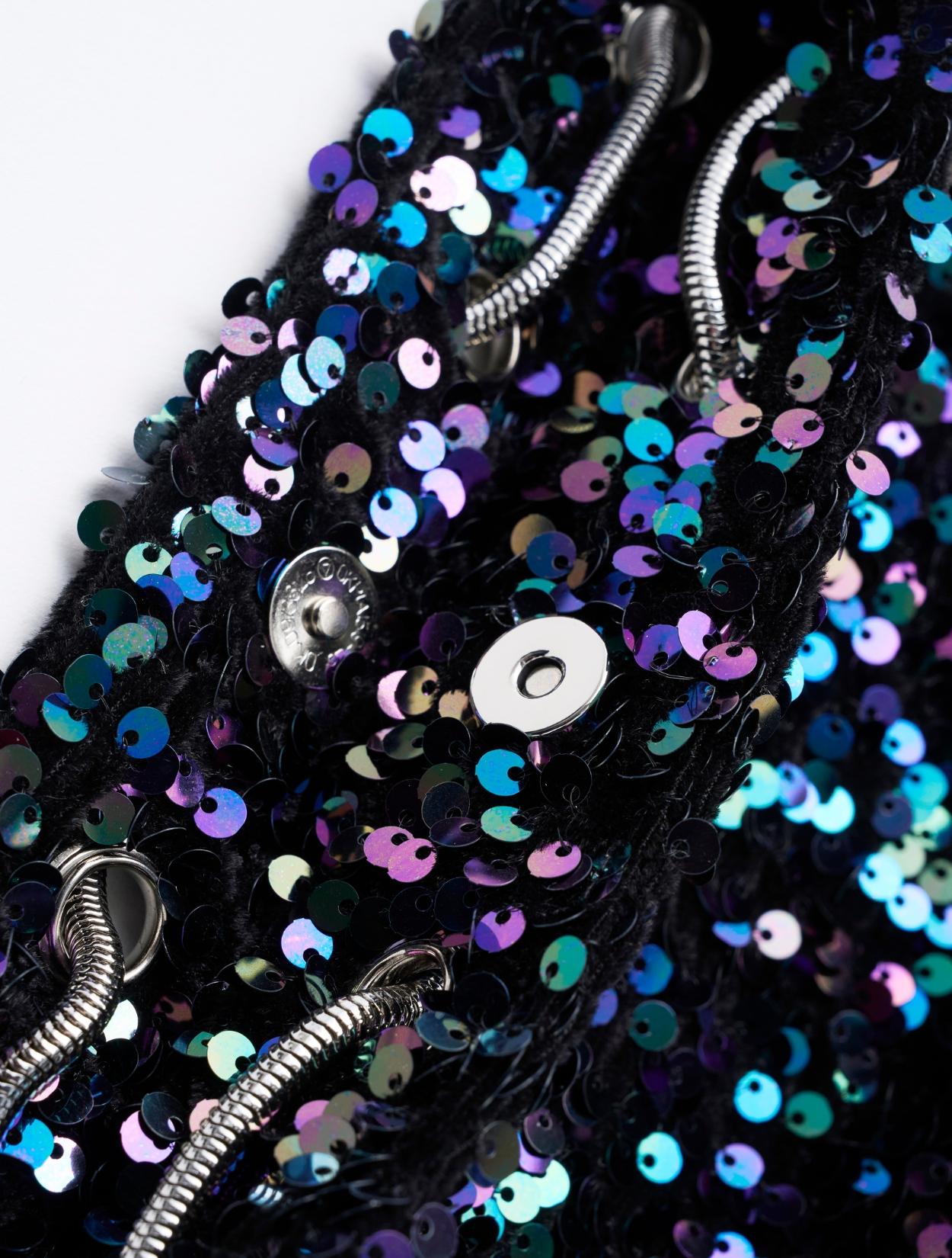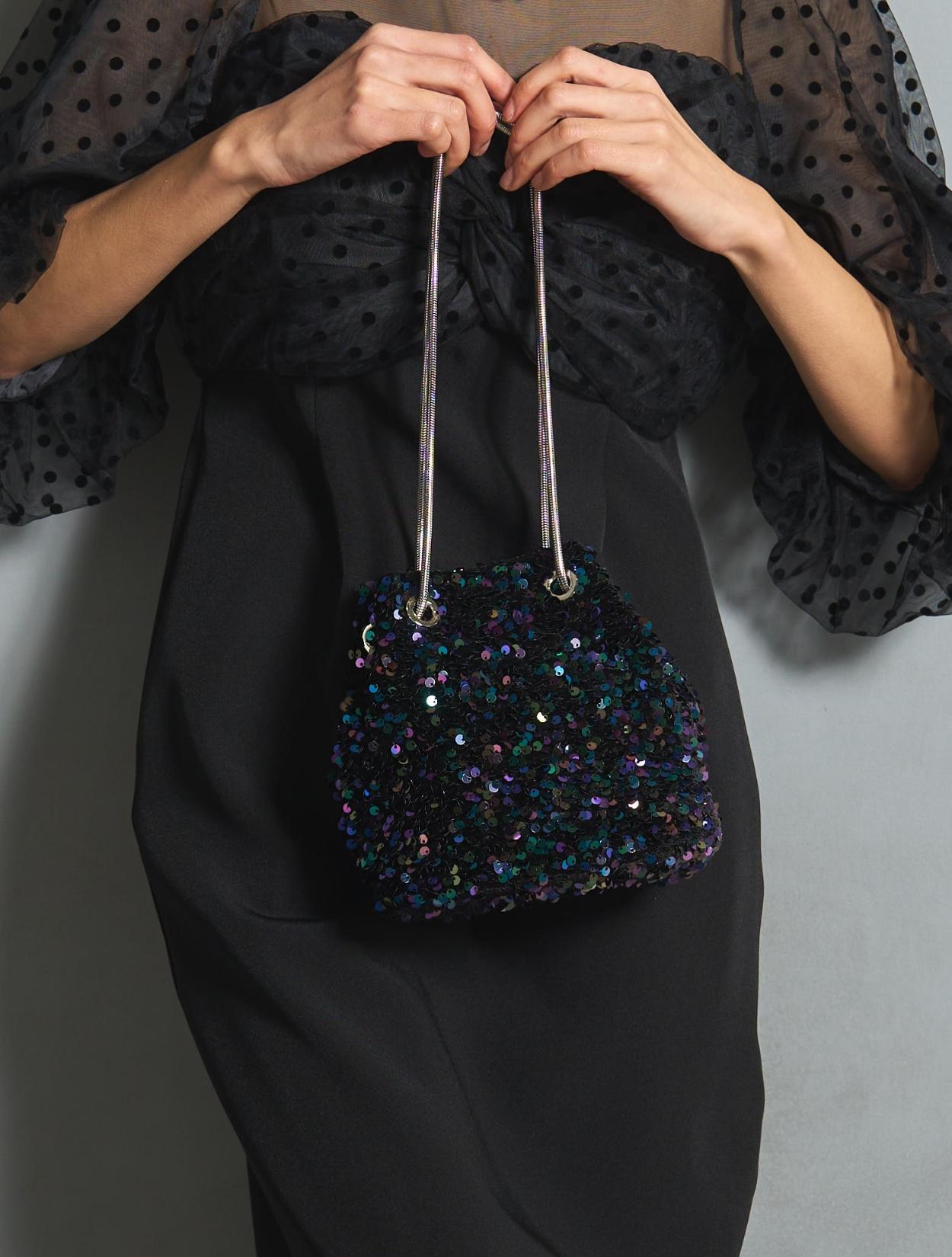 スパンコールがキラキラかわいいバッグ。パーティーバッグよりも若干カジュアルに持てるので、頑張りすぎていない印象が◎。 ハンドバッグにもショルダーバッグにもなります。