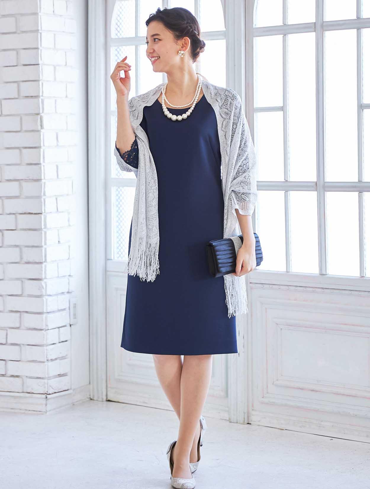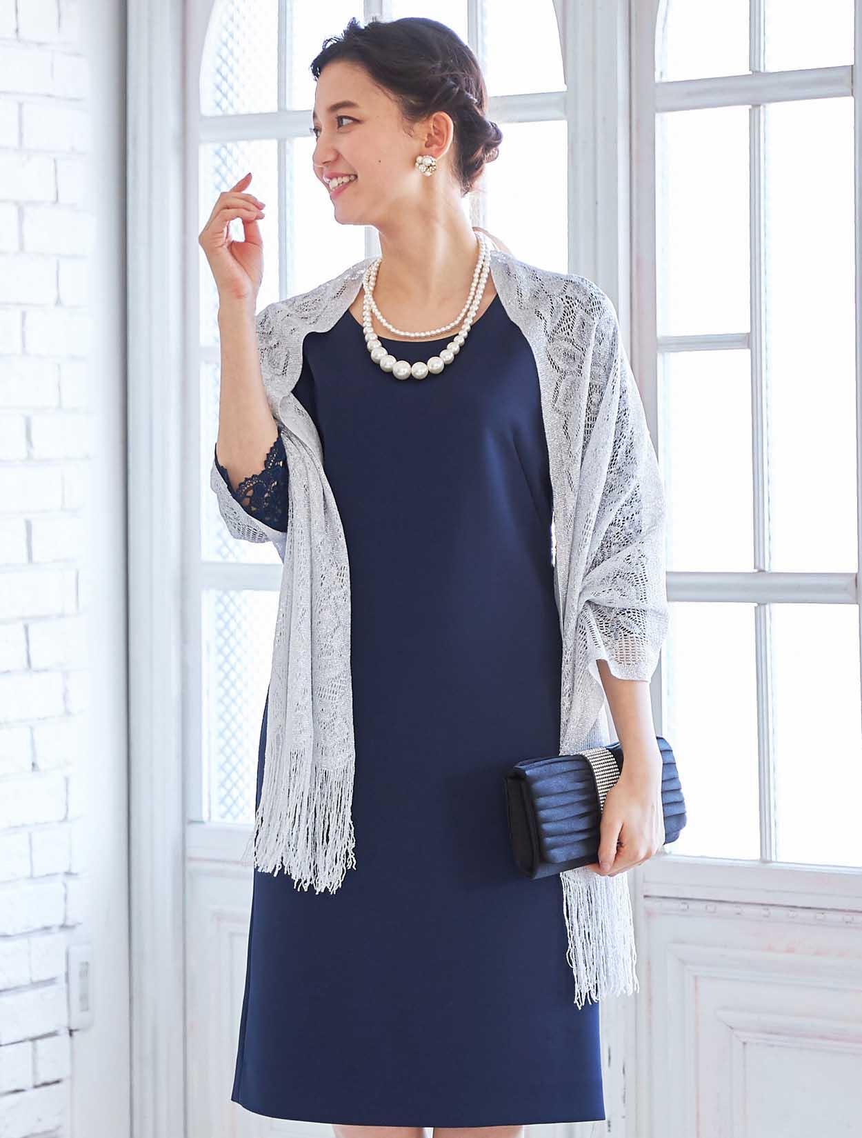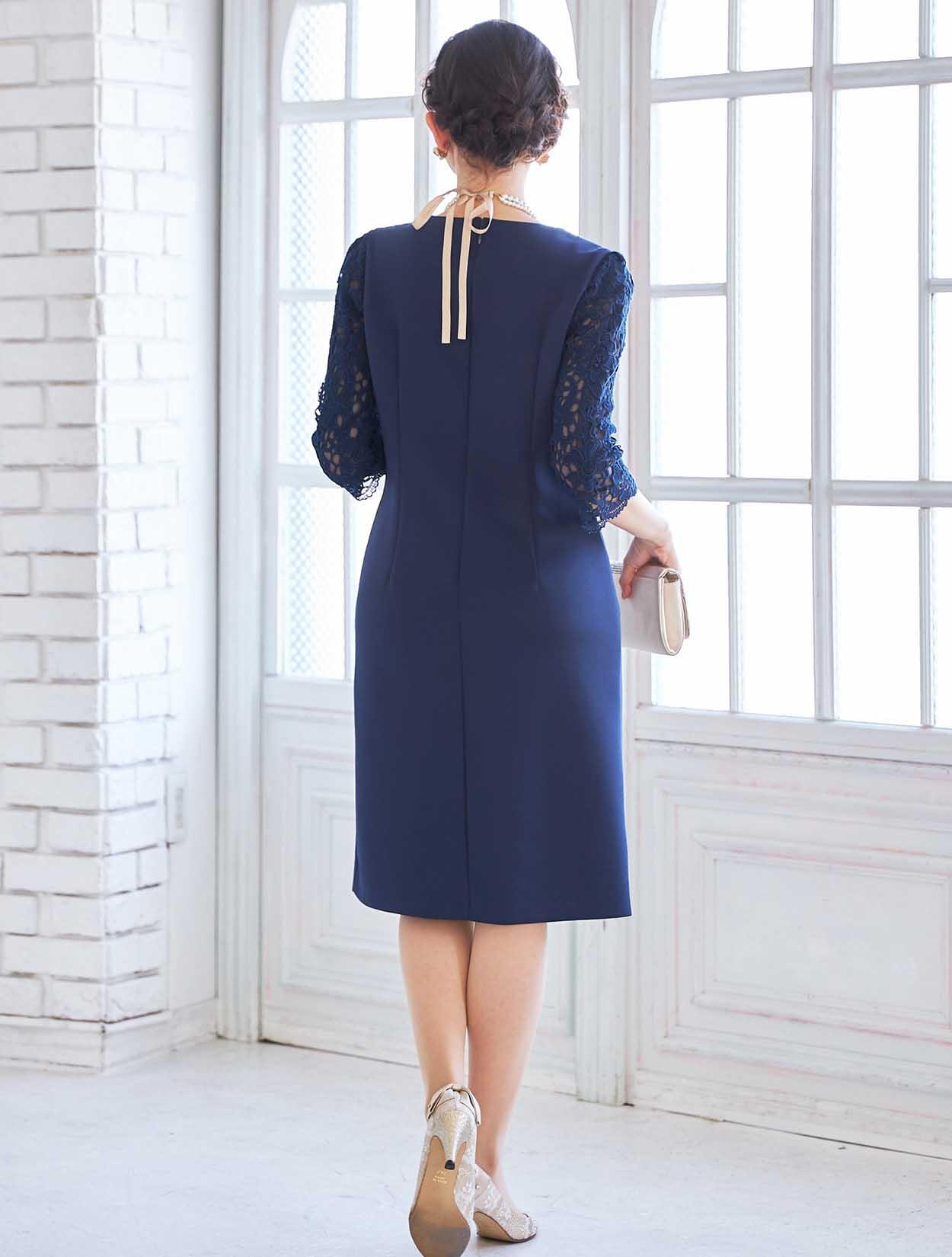 程良く透けるレースが大人の抜け感を演出。ノンストレスな締め付けのないドレスですが、ウエスト部分はスッキリと見えるデザインです。