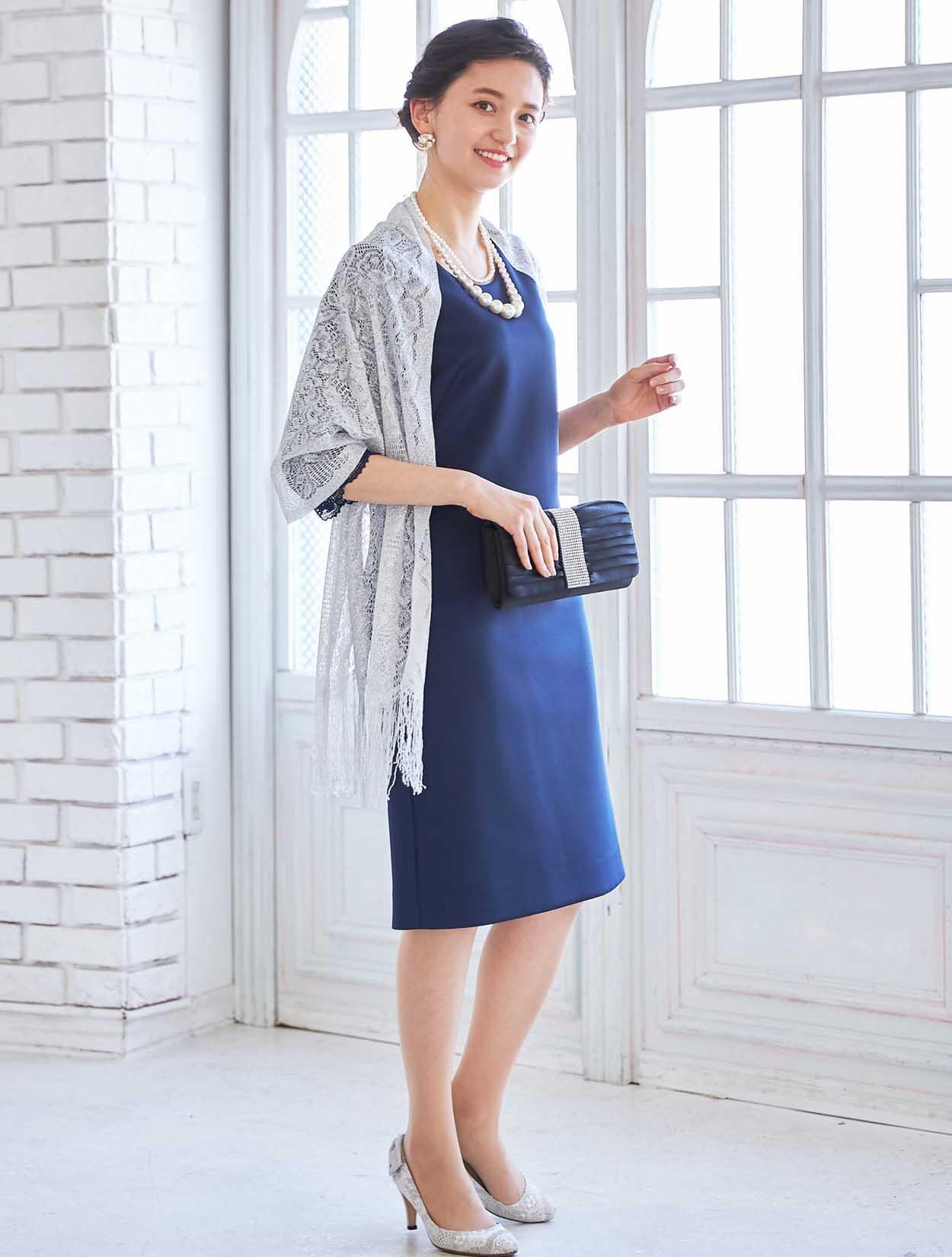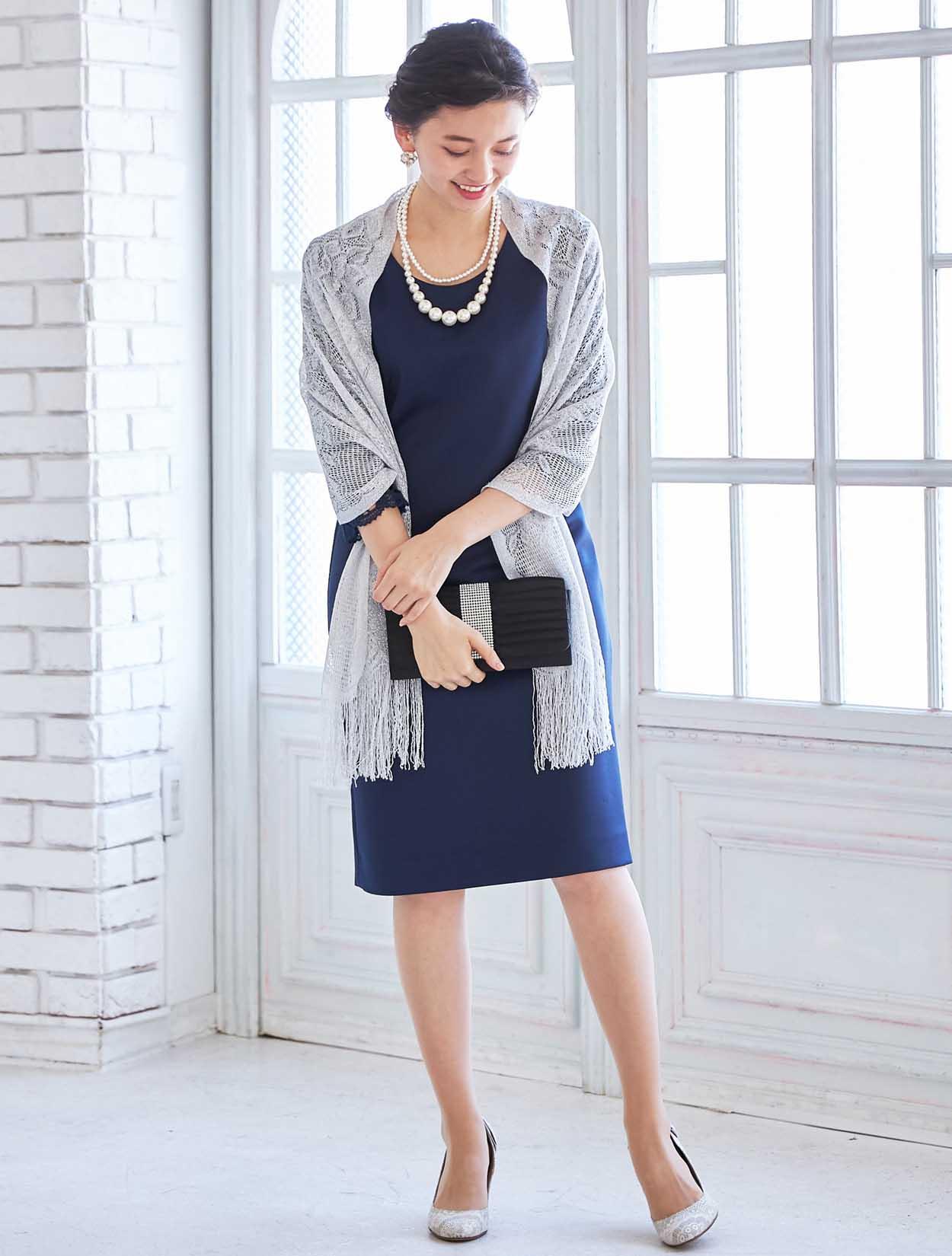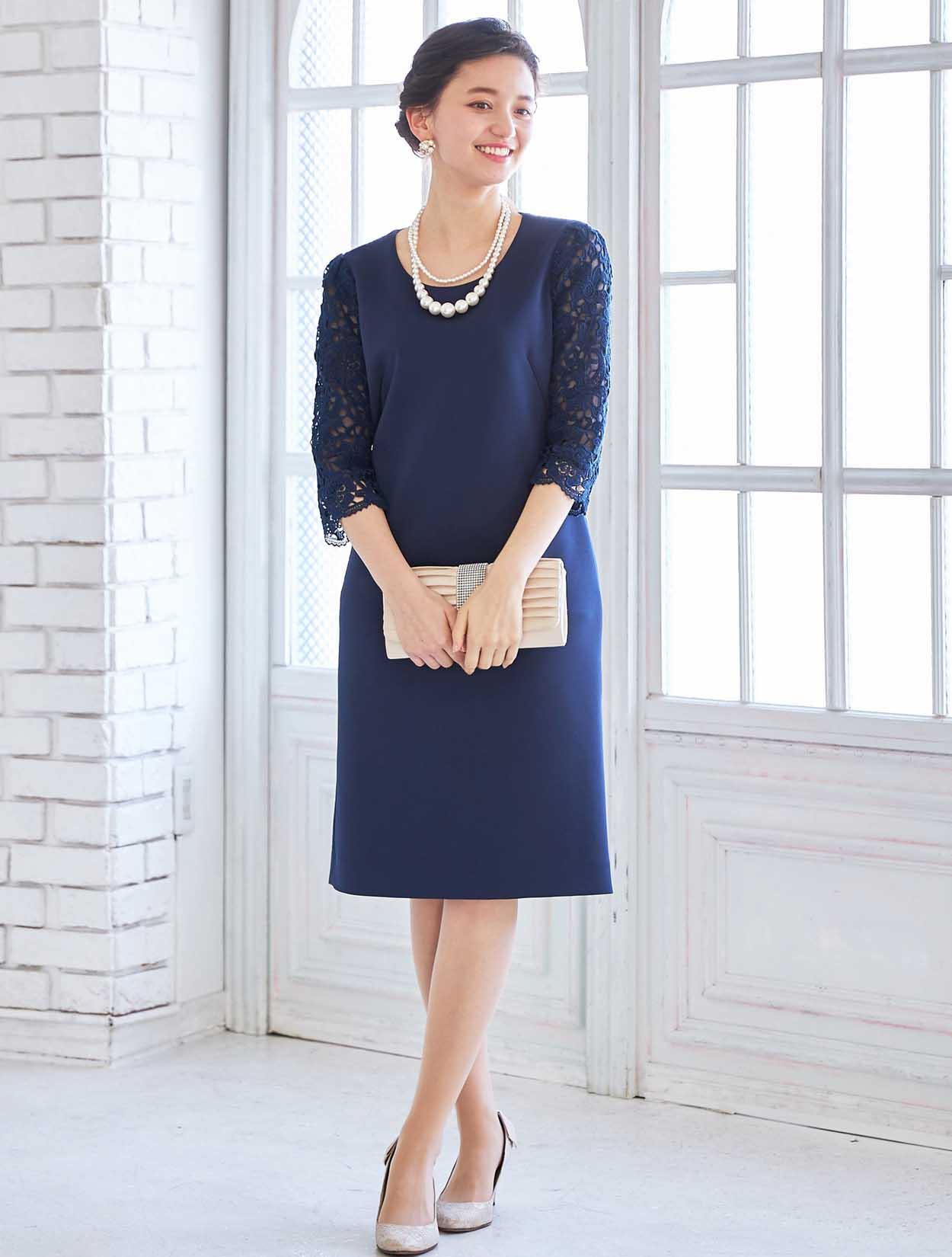 程良く透けるレースが大人の抜け感を演出。ノンストレスな締め付けのないドレスですが、ウエスト部分はスッキリと見えるデザインです。