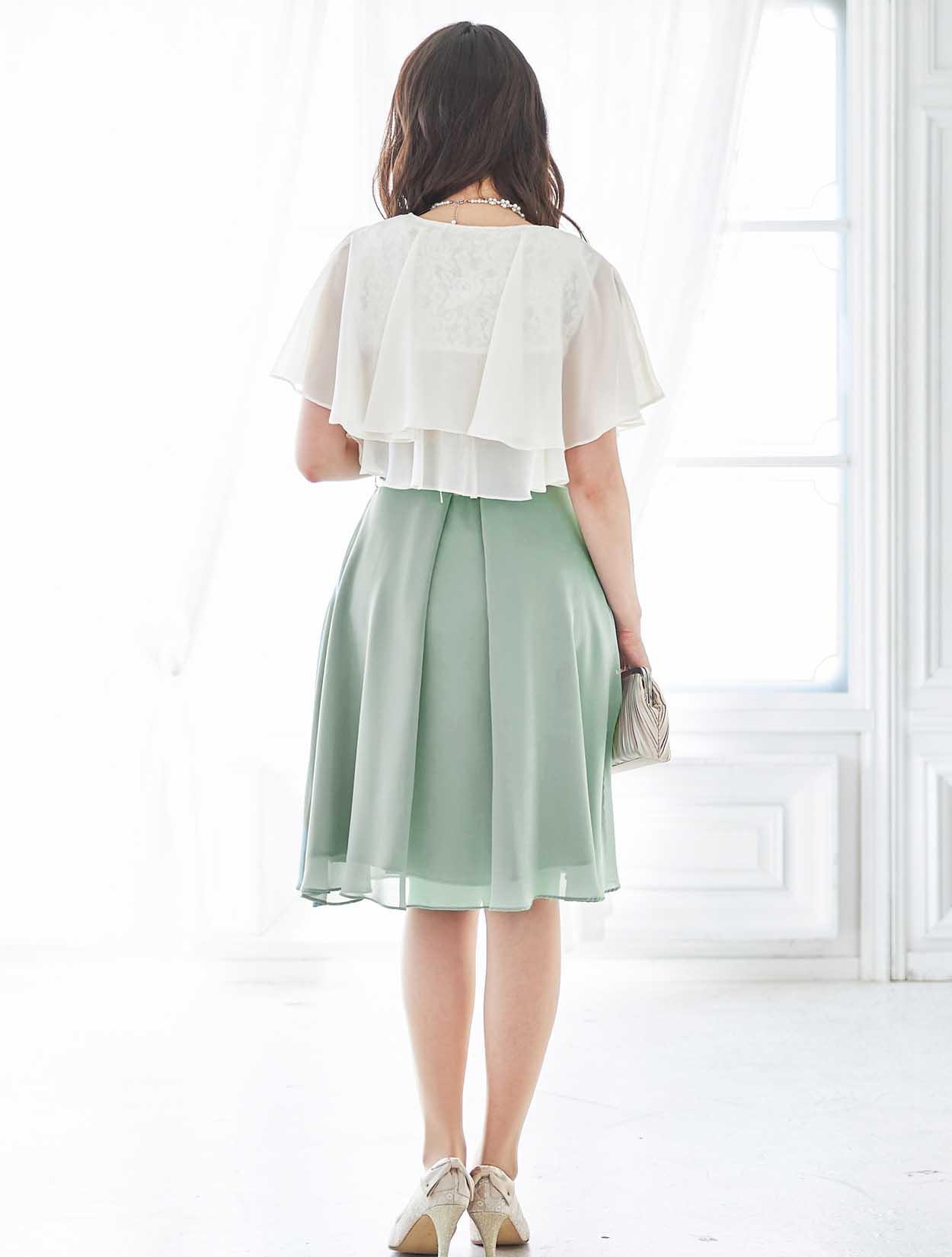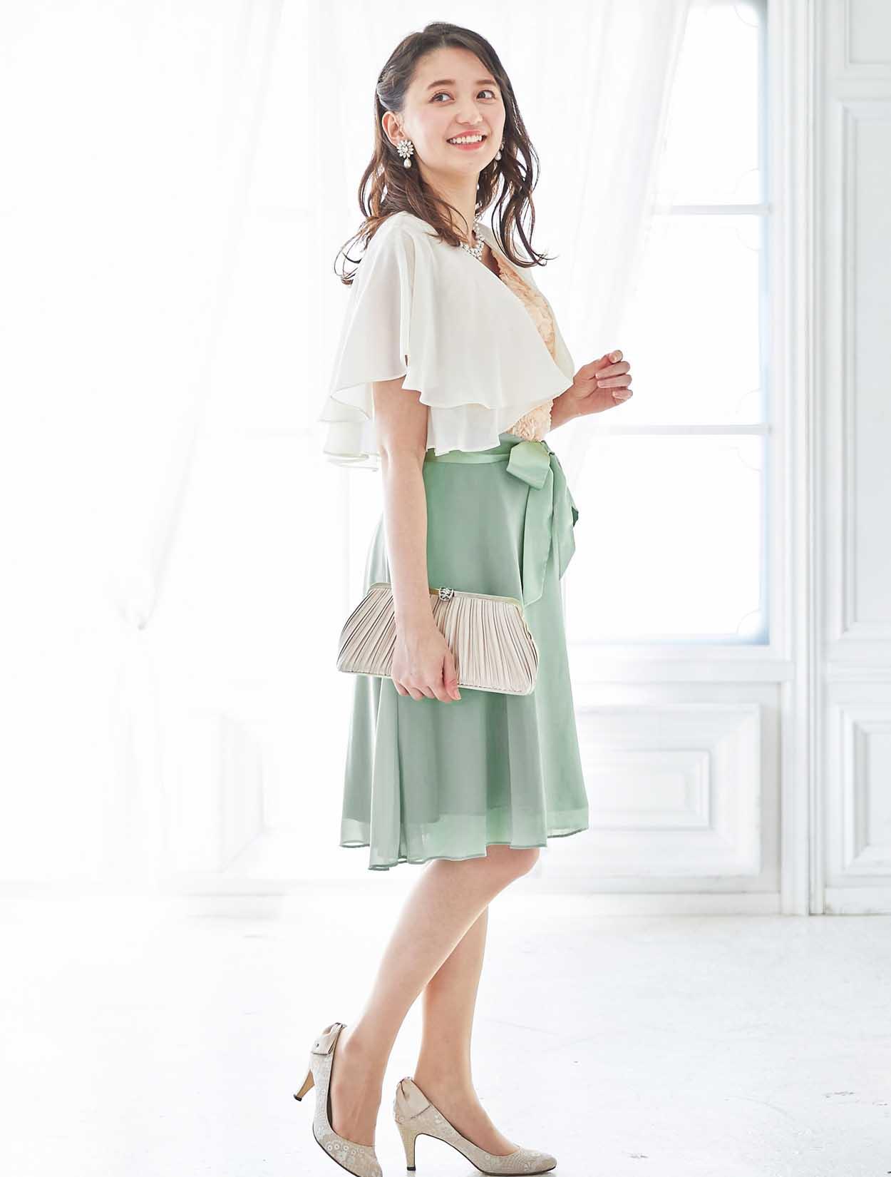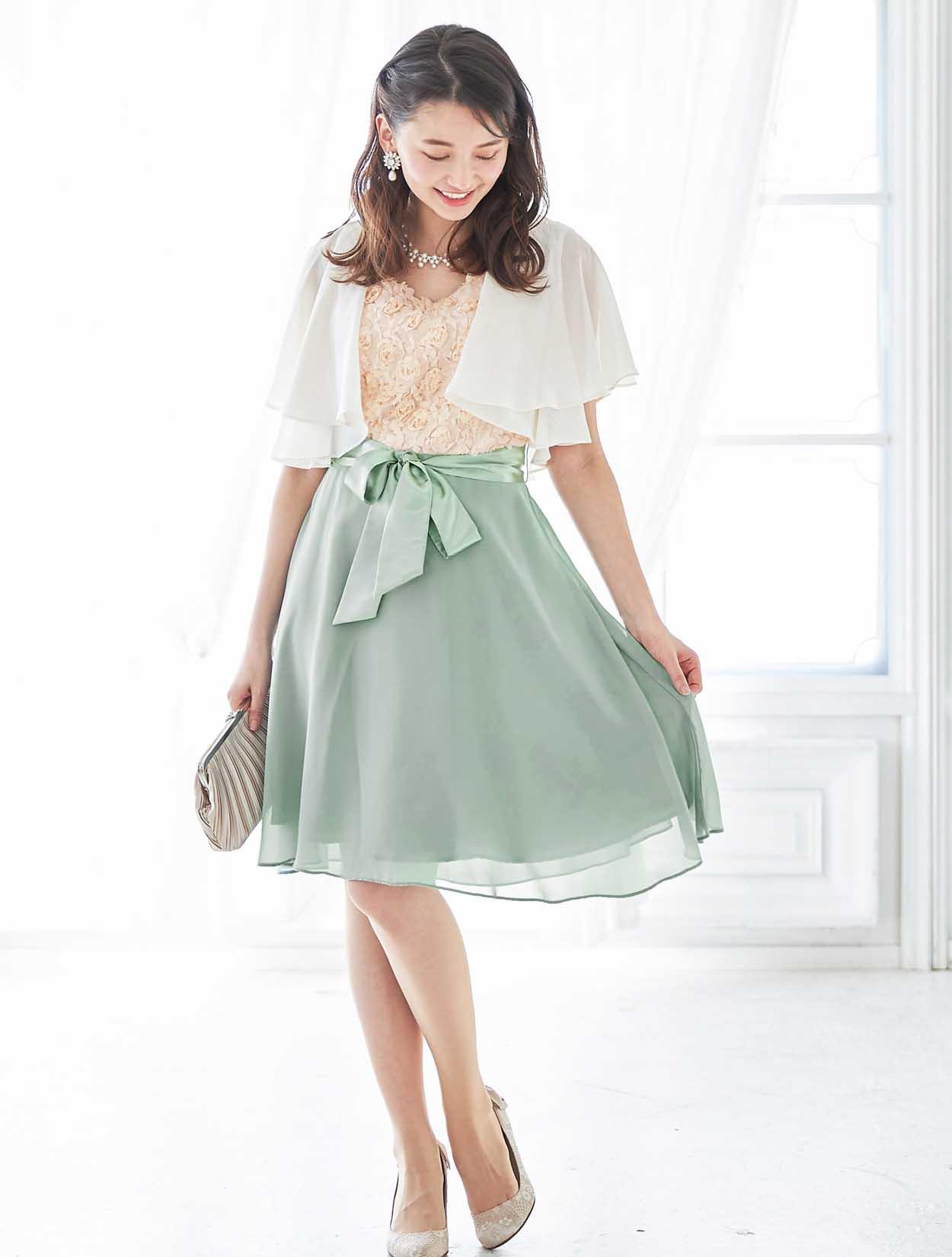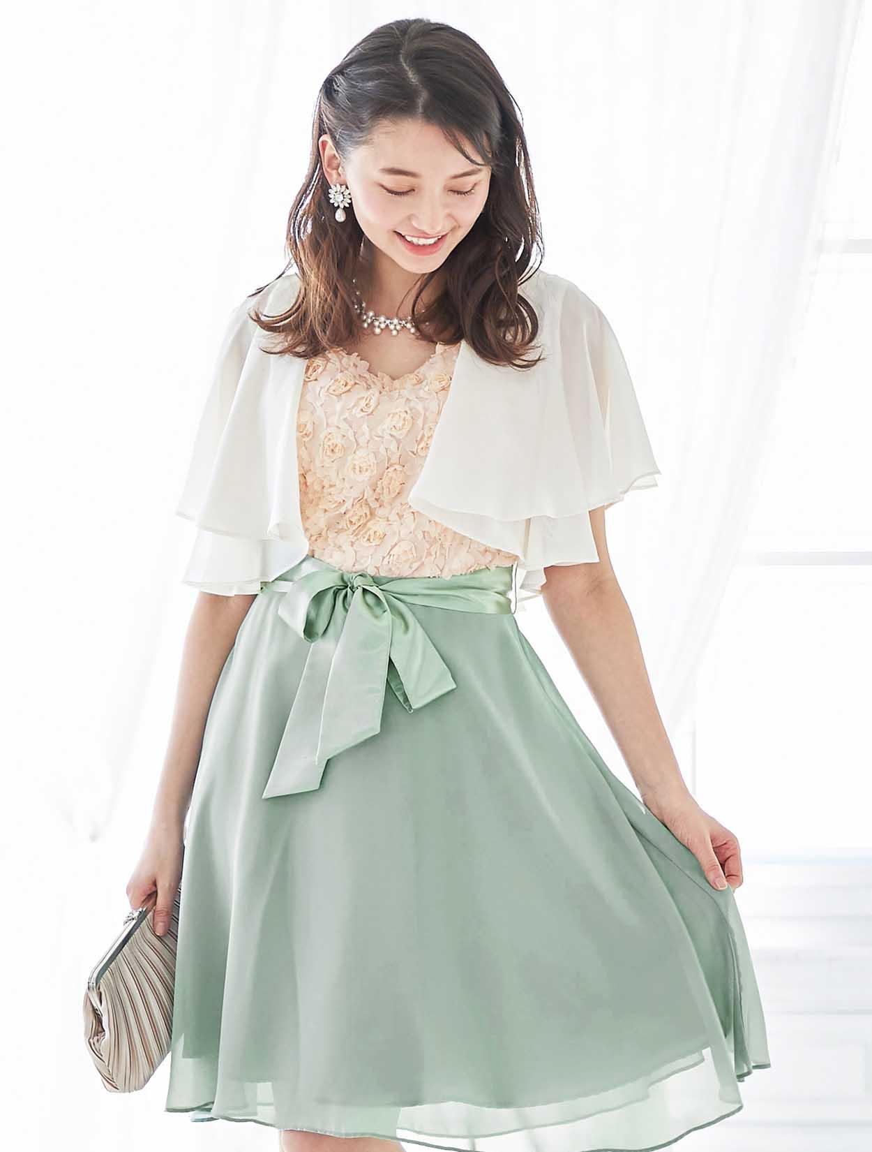 バラと爽やかグリーンが春らしいバイカラードレス