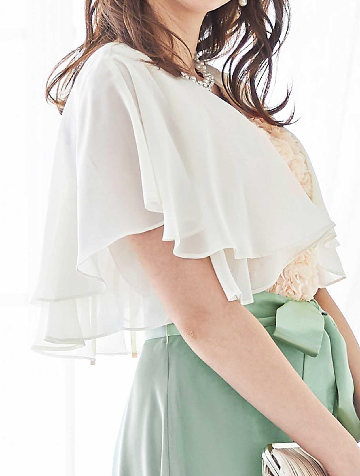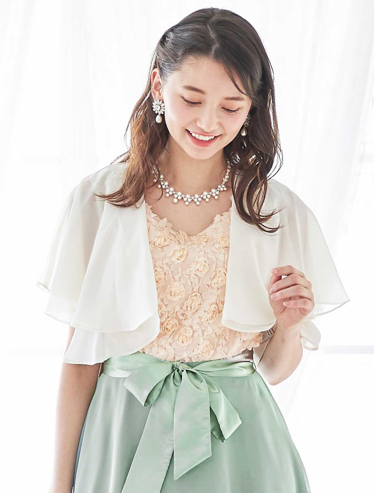 エアリーなベージュのボレロを合わせた軽やかなコーディネート。