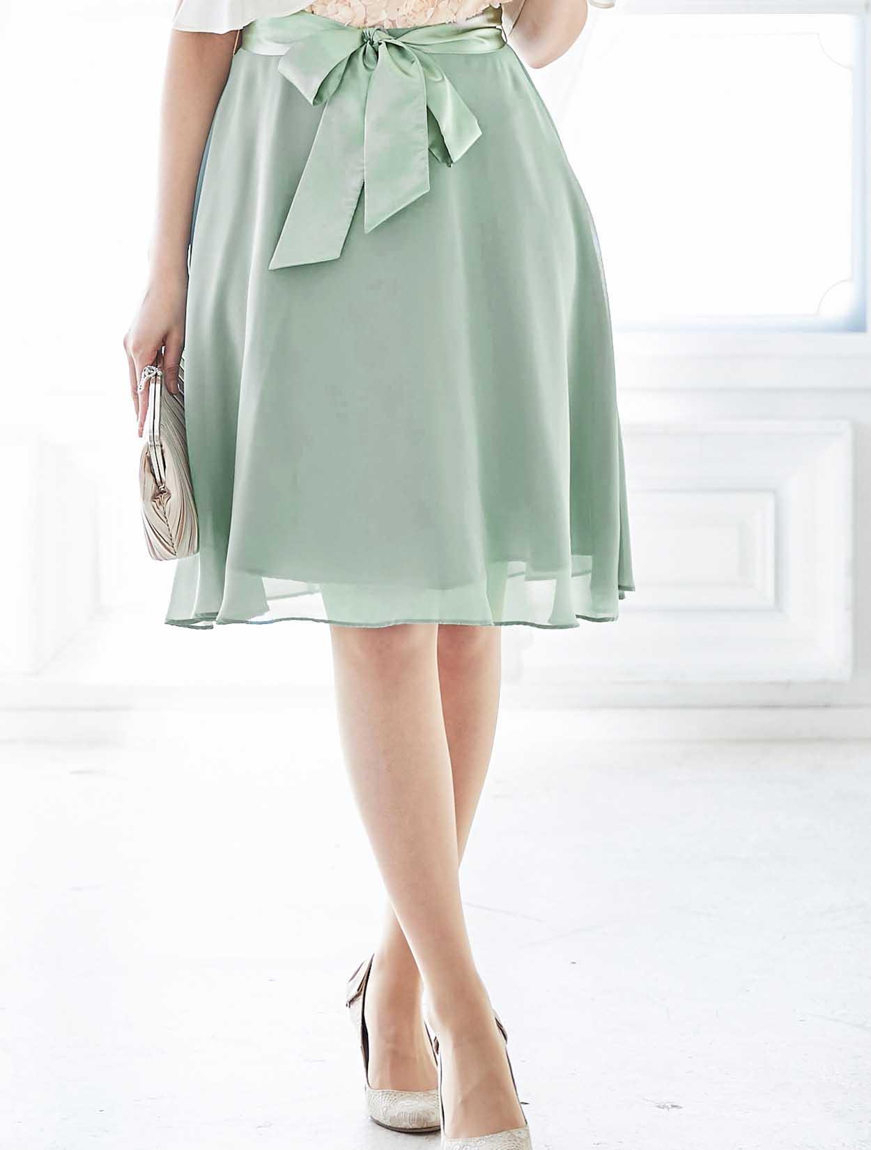 ライトな着心地で程よい透け感のあるシフォン生地を使用。広がり過ぎないスカートは動くたびに軽やかに揺れてフェミニンな表情に。