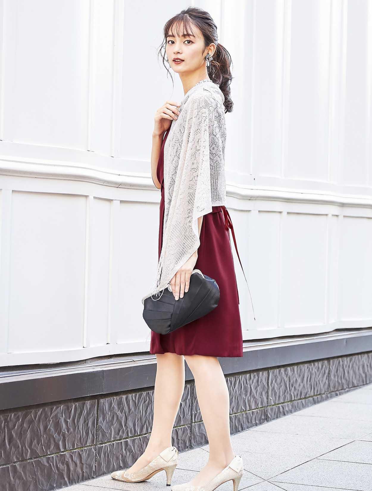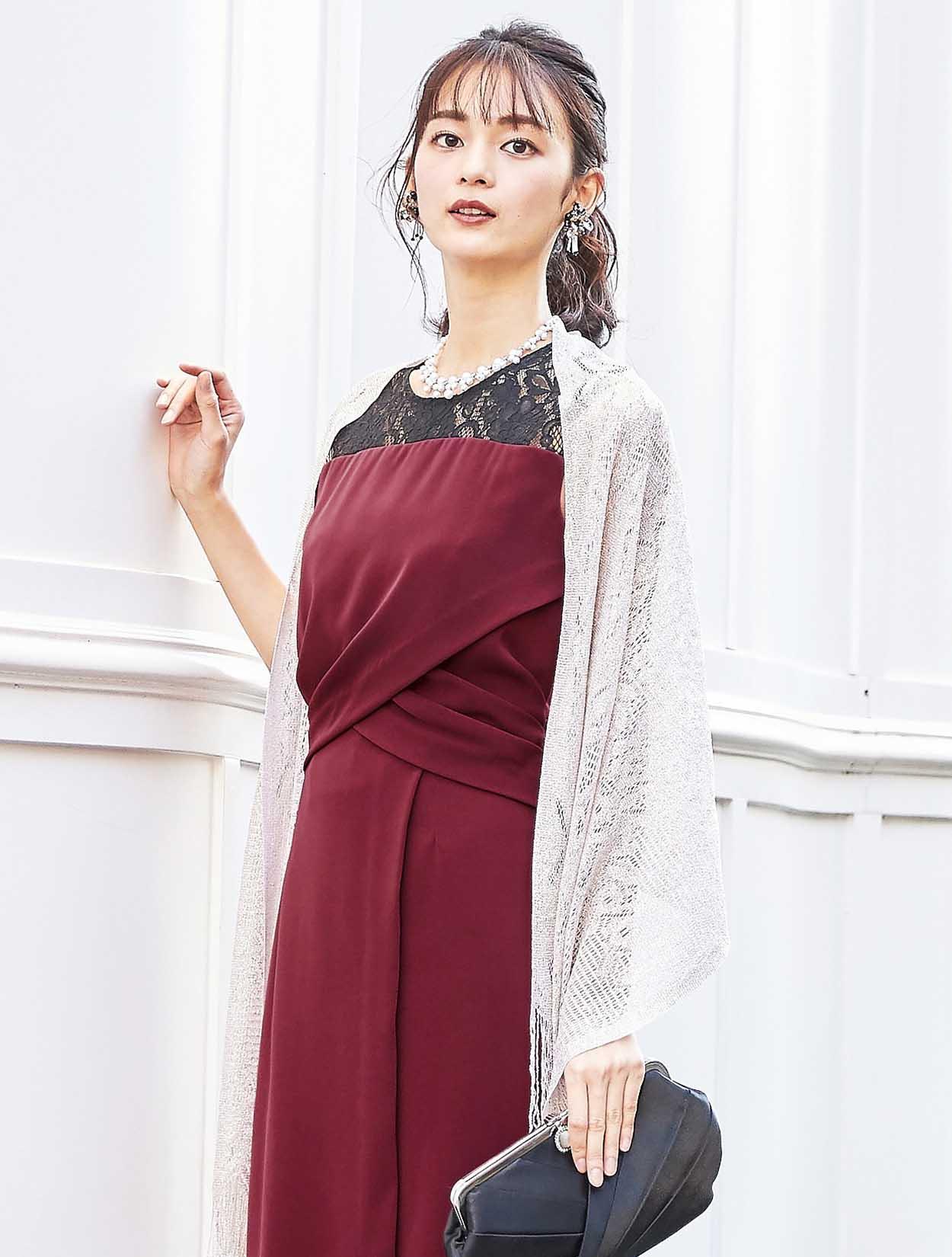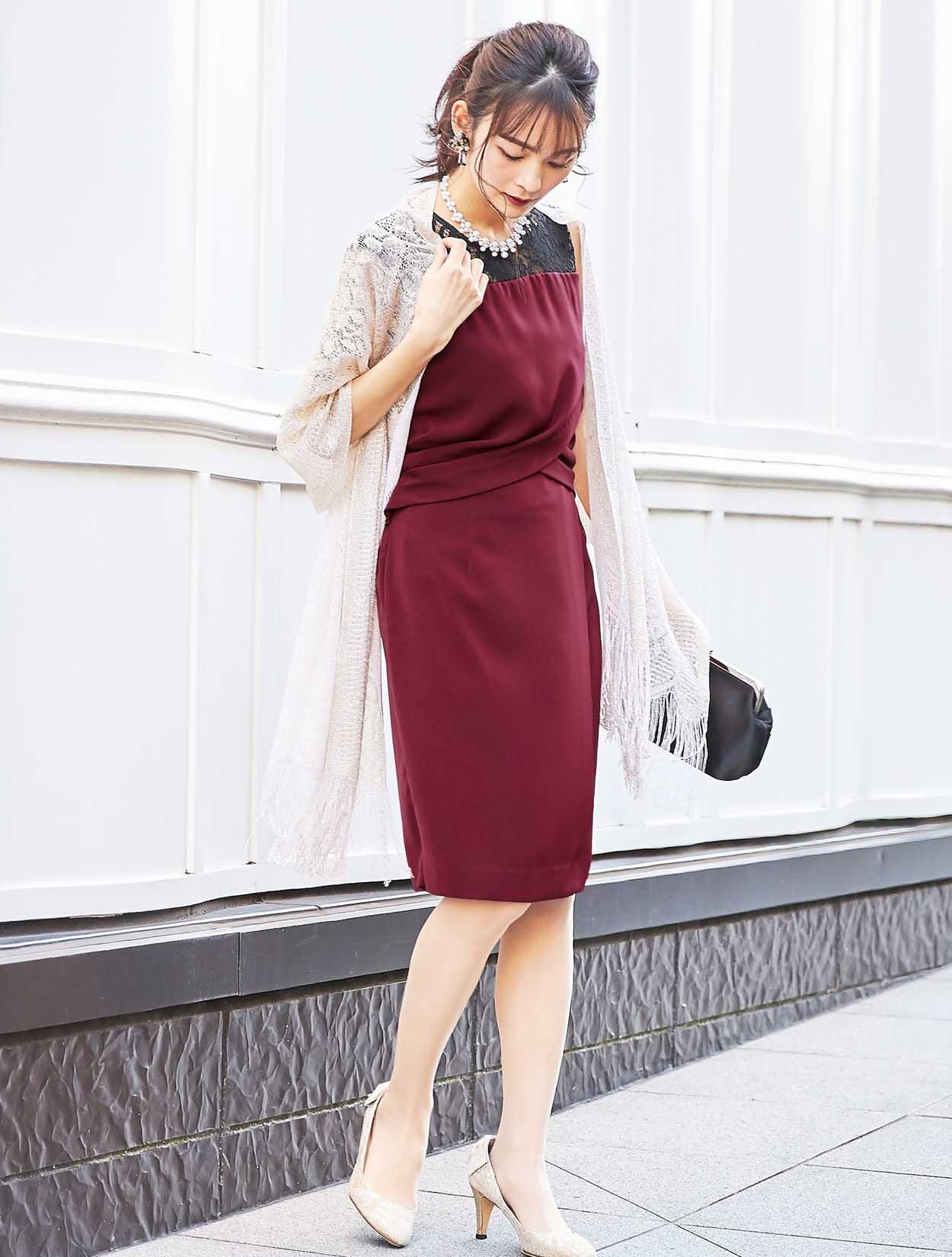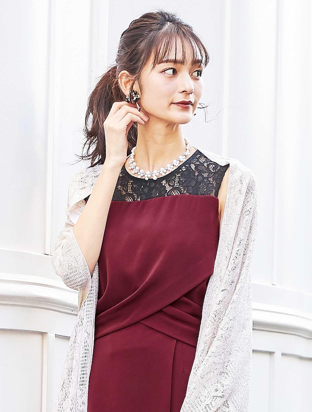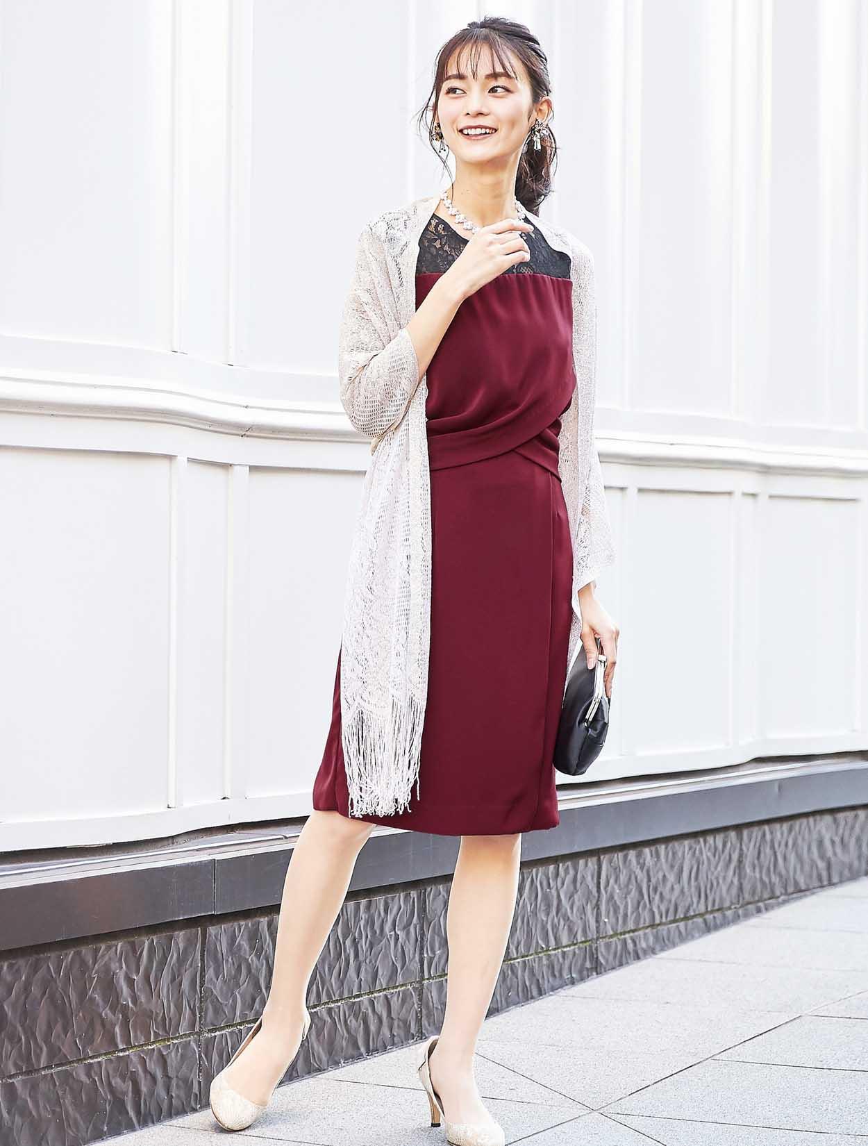 ワインレッドカラーが大人の奥行きを見せてくれるドレス