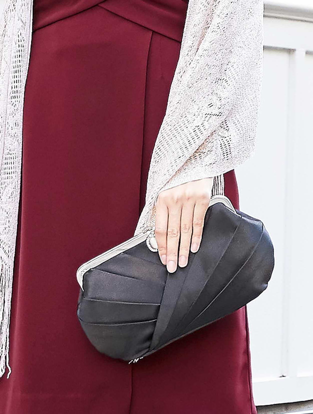 ブラックのバッグは大人っぽい表情のタイトドレスにぴったりのカラーです。