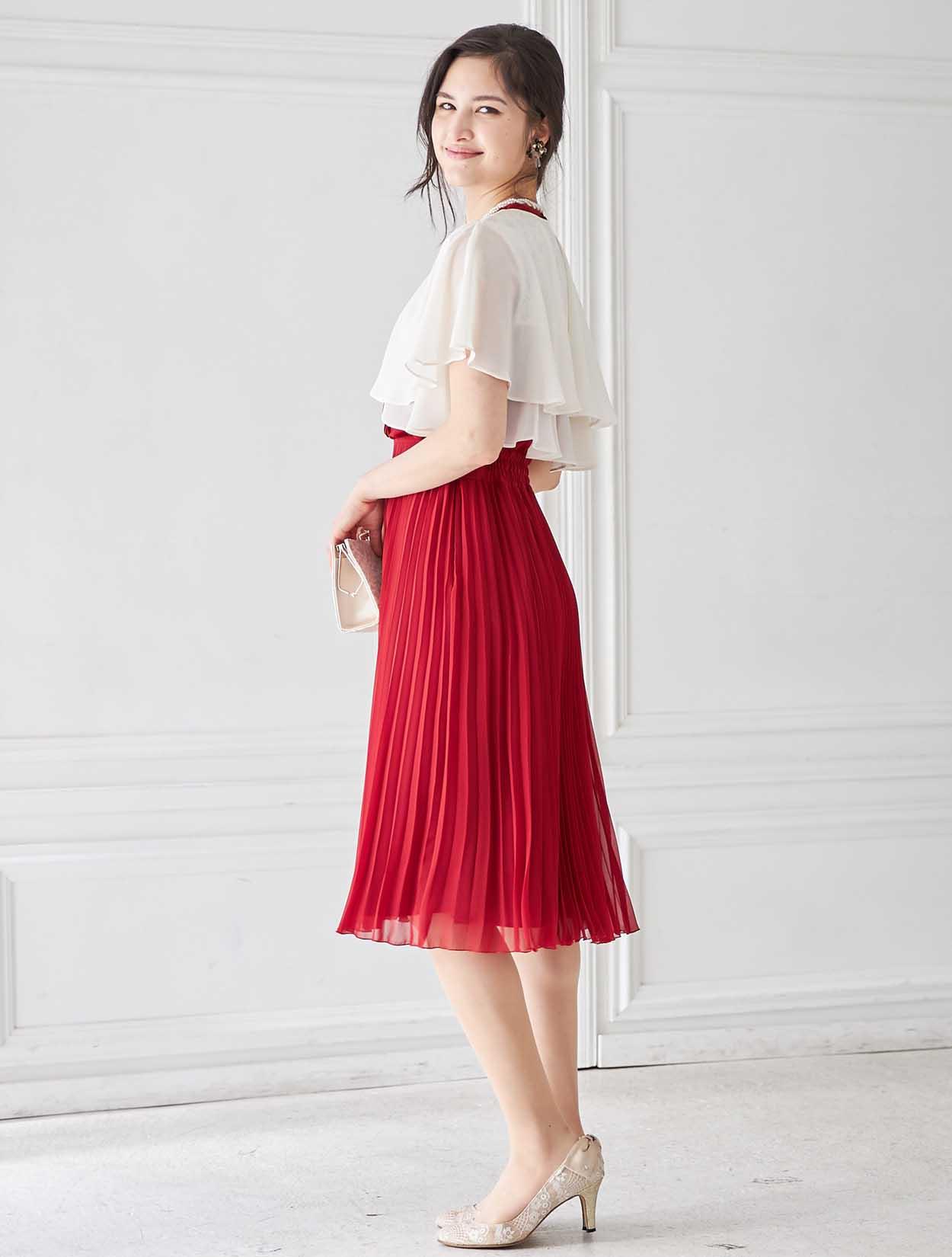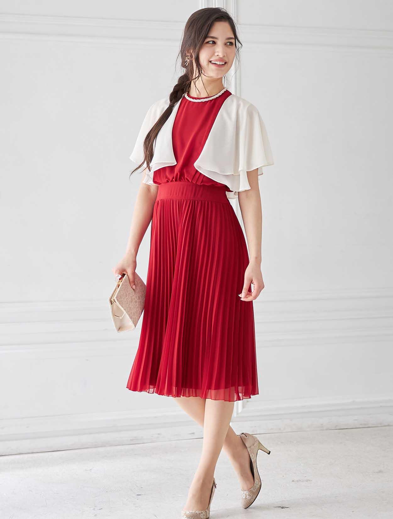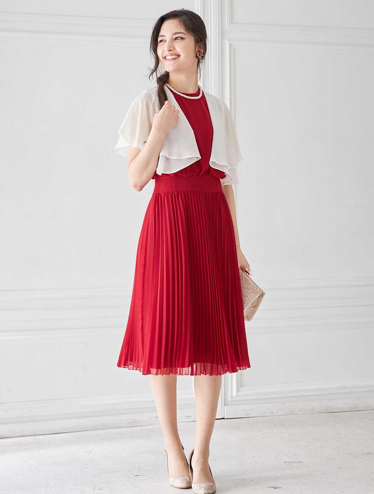 鮮やかレッドのトレンドプリーツドレス