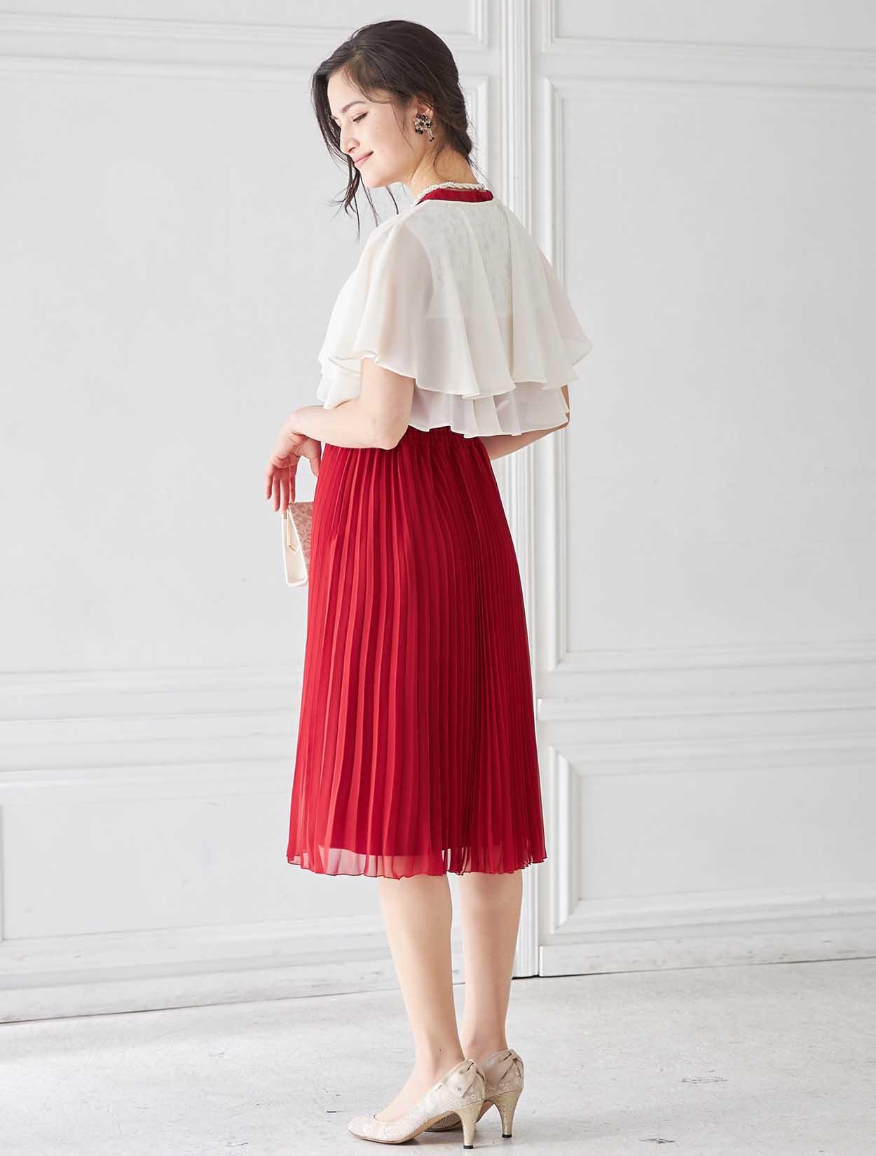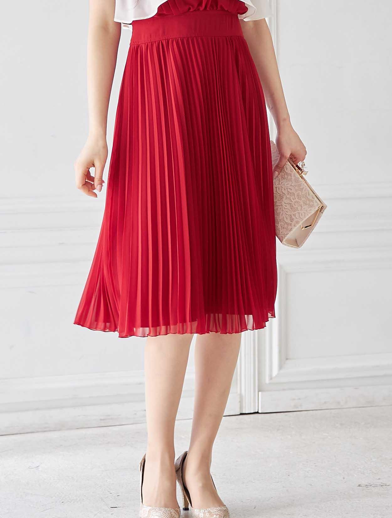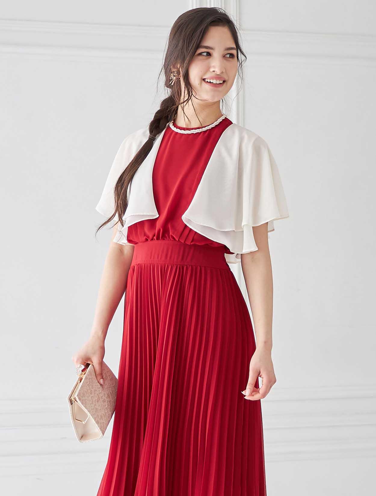 鮮やかレッドのトレンドプリーツドレス