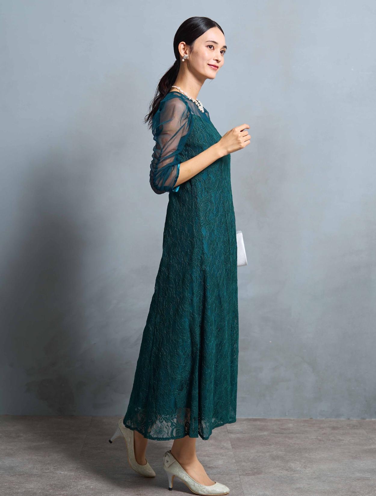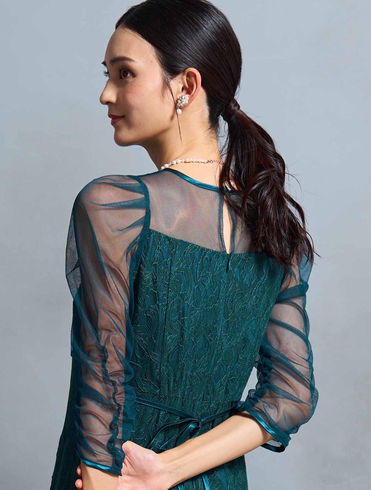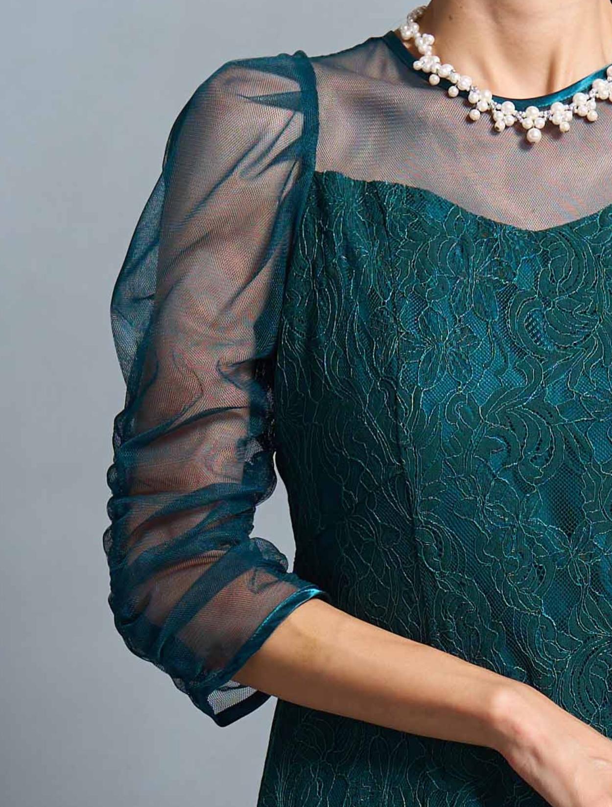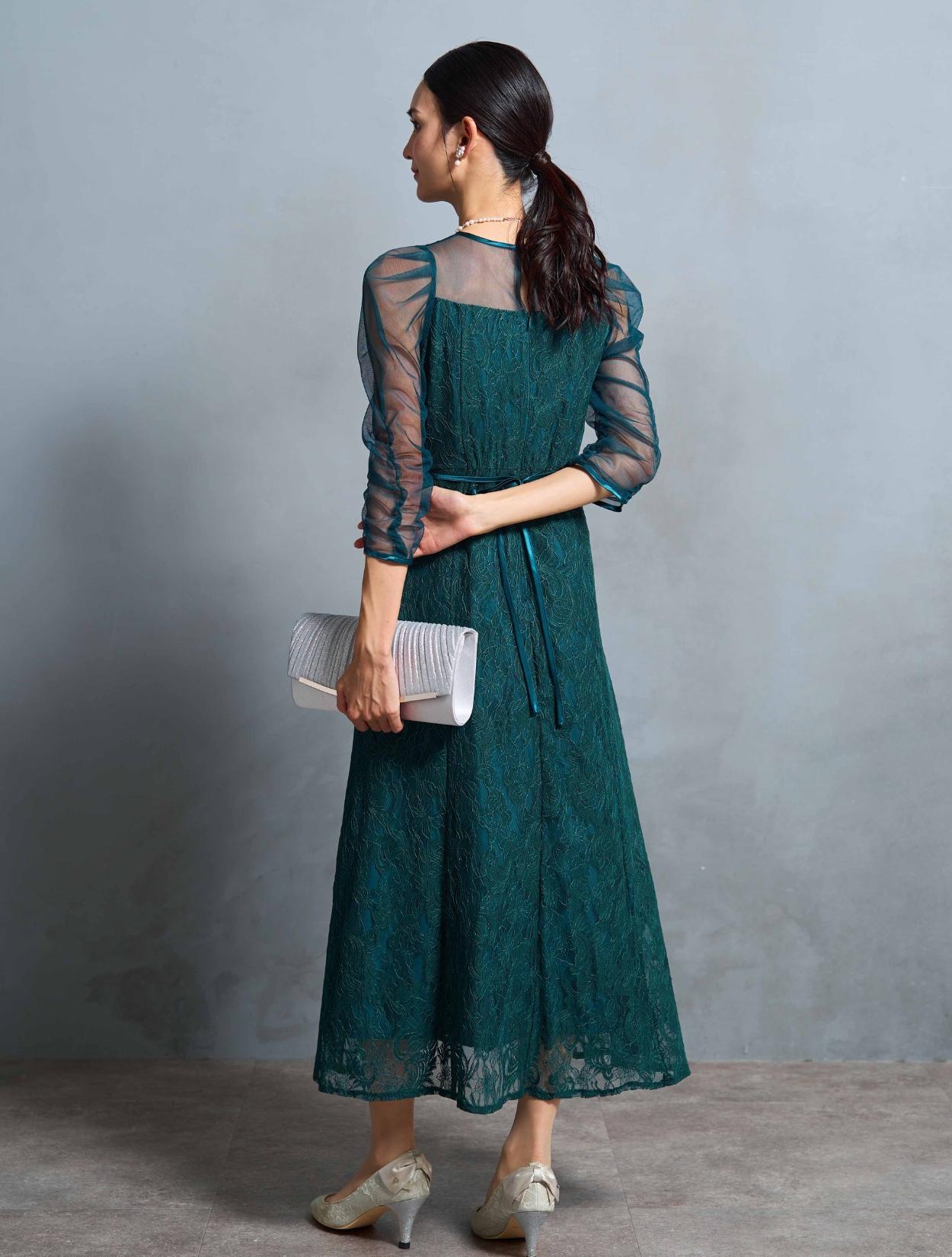 結婚式や二次会・パーティーはもちろん、成人式や同窓会・謝恩会や卒業パーティーにもおすすめです。顔合わせやお食事会、ドレスコードのあるアフタヌーンティー、婚活パーティー、ディナーショーなどのドレスコードがある会場でもご利用いただけます。袖ありドレスで着丈もしっかりあるので、受付や代表スピーチをする方にもおすすめです。グリーンは20代30代の親族ドレスとしても着られます。