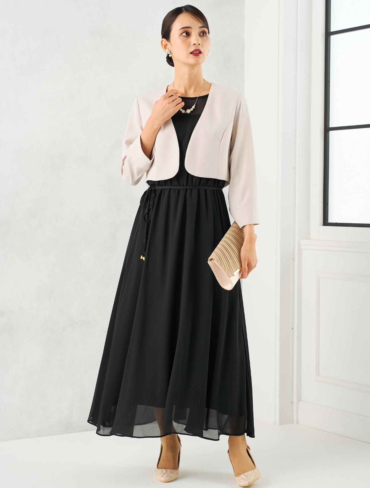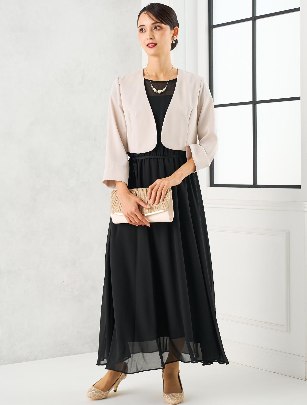 シンプルでシックなブラックカラー。軽さのあるジョーゼット生地のブラックは、重たくなり過ぎないのがポイントです。