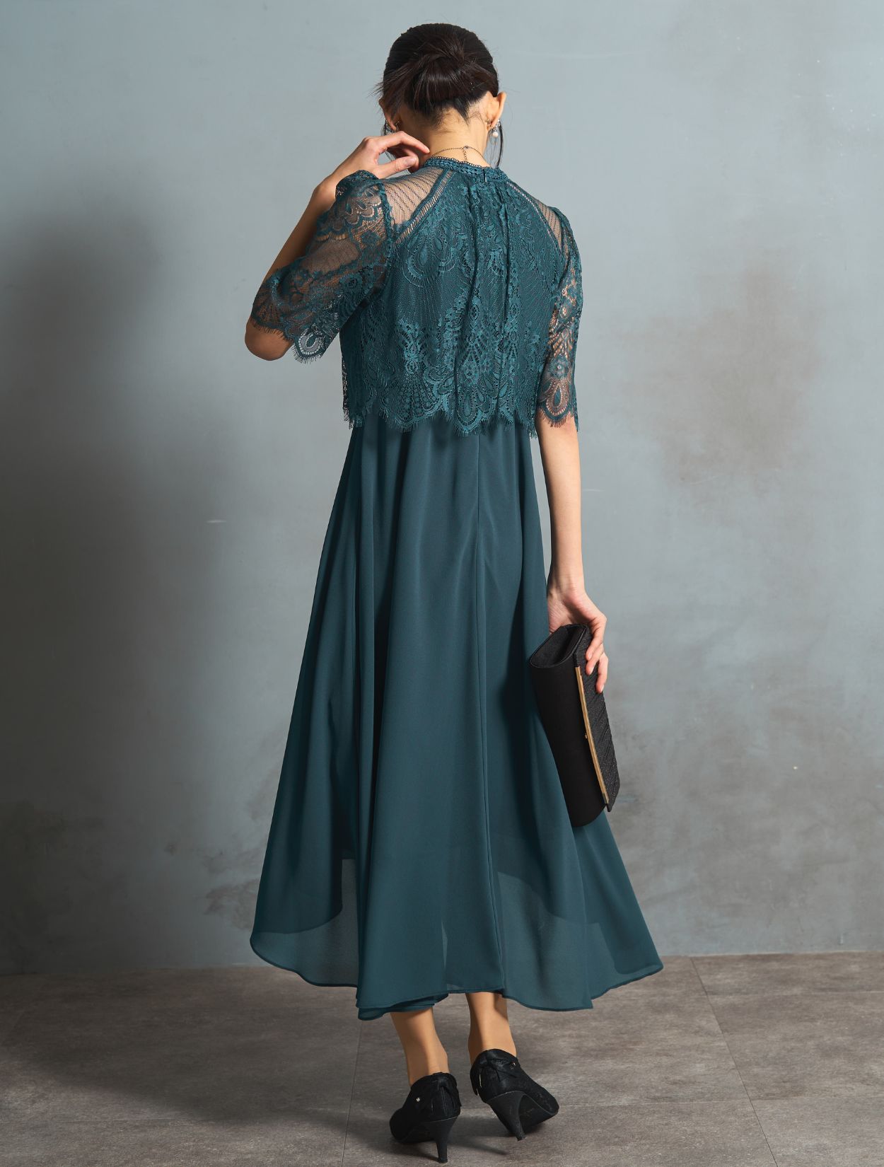 レース×ジョーゼットのドレスは、「春夏秋冬」と年中ご着用いただけます。