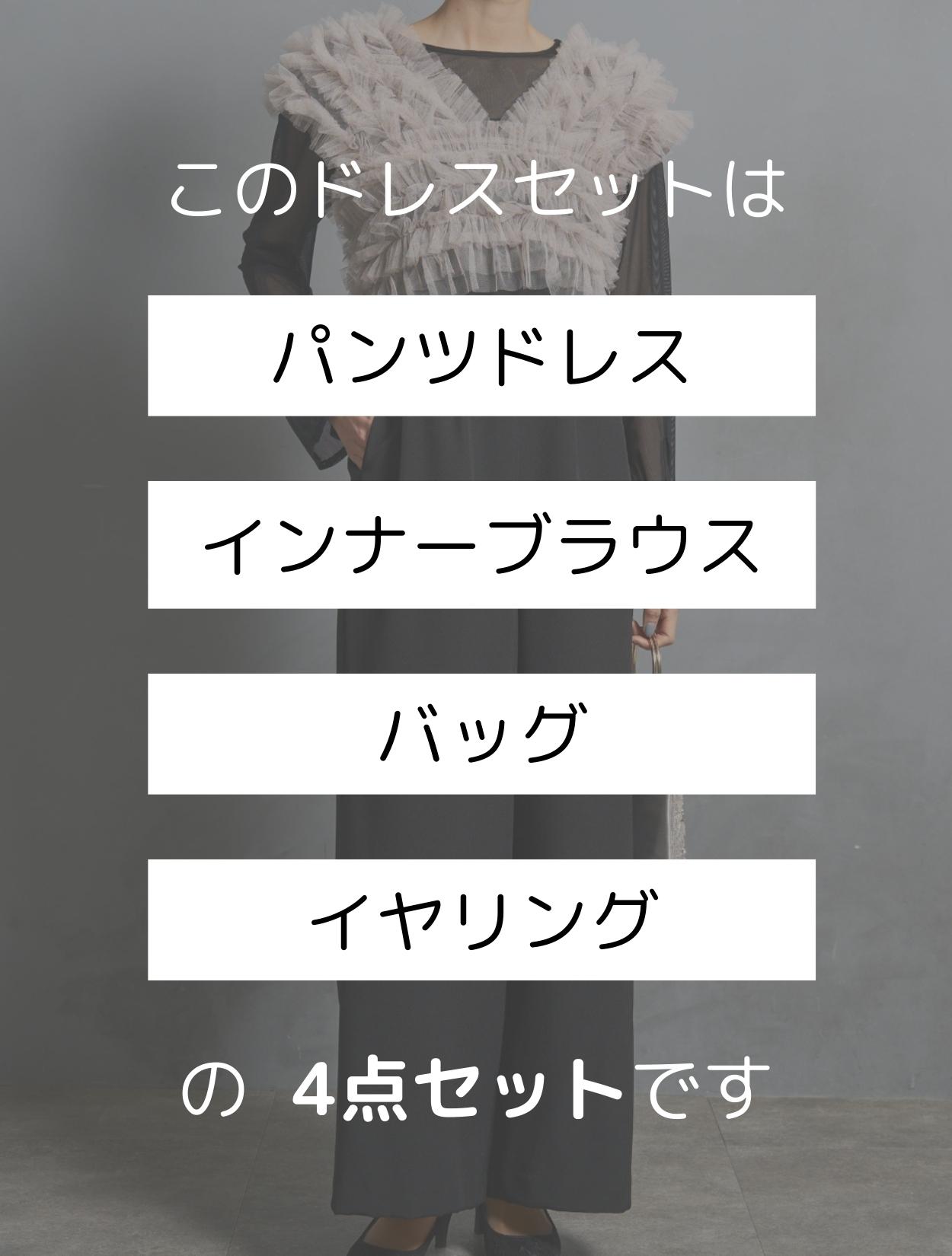 このセット商品は「ドレス・ブラウス・バッグ・イヤリング」の4点コーディネートセットです。