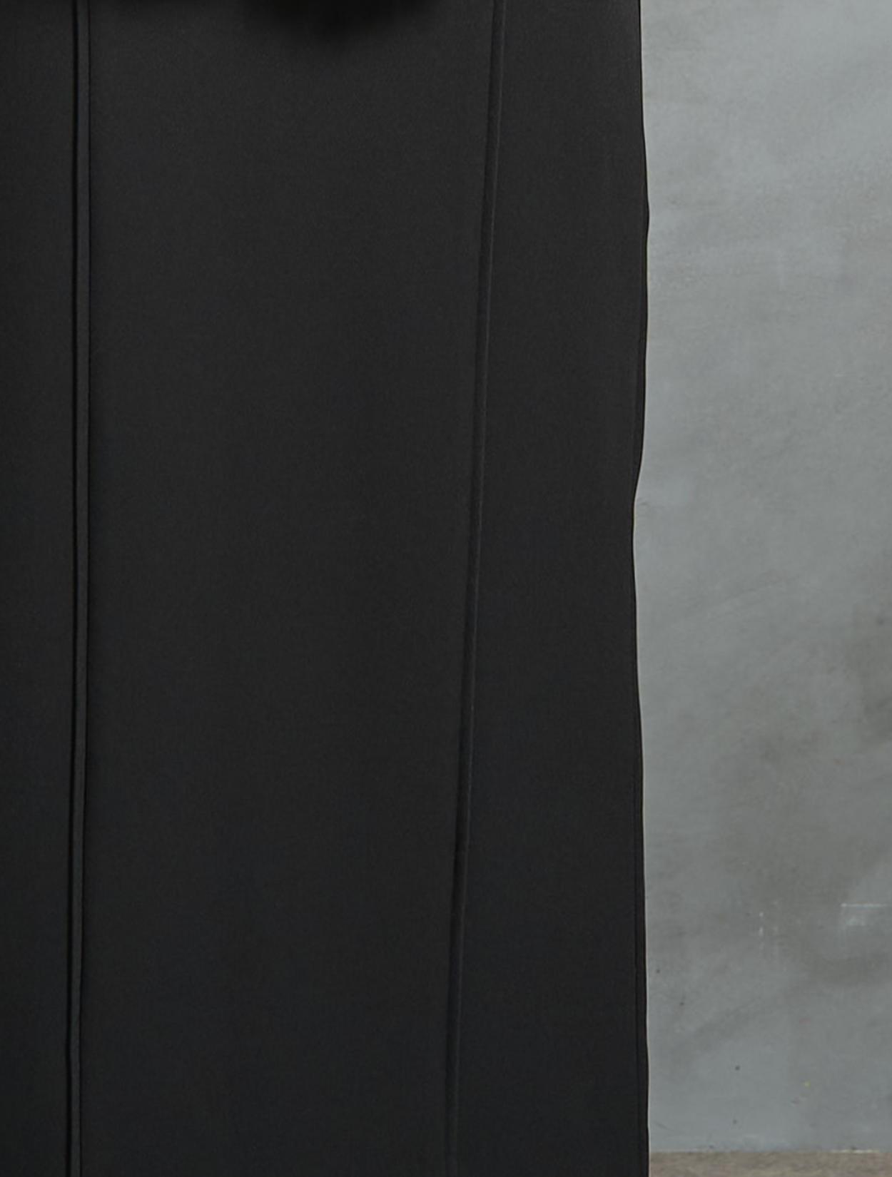 ワンピースは、すっきり大人っぽく見えるIラインのストレートスカート。程よく厚みがある生地で高級感もあり、ボディラインを拾い過ぎずヘルシーな着こなしができます。さりげなくメリハリを効かせた同色のパイピングもポイント。スカートの後ろにはスリットが入っていて足捌きも◎。ポケットもあります。デコルテから袖にかけては透け感のあるシアー素材で、全体の印象に軽さや抜け感をプラスしてくれます。程よい肌見せ感もパーティーやフォーマルなシーンでは重要ポイントです。