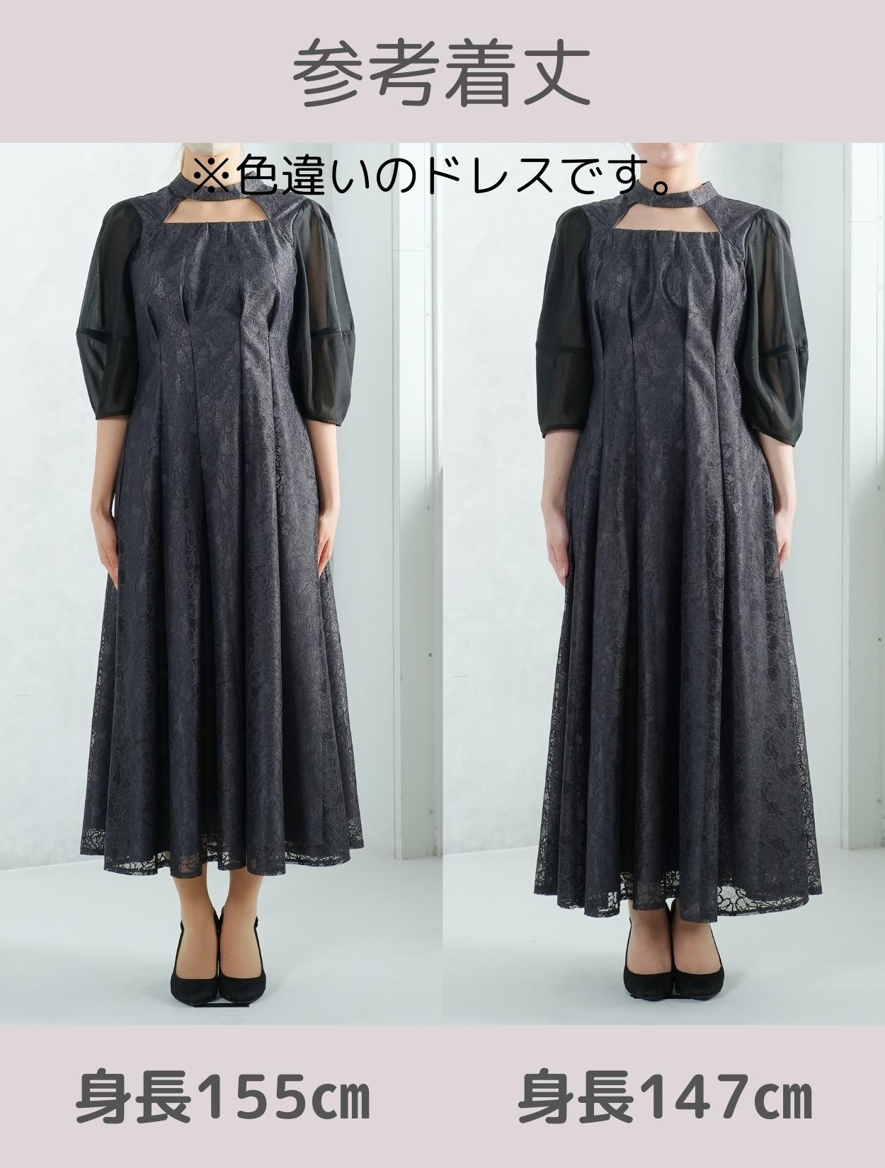 フラワーレースの柄は大き過ぎず、小柄な方でも違和感なく着こなせます。背中が開いていないのも嬉しいポイント。