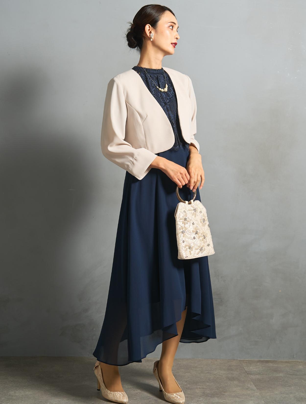 このセット商品は「ドレス・ジャケット・バッグ・ネックレス」の4点コーディネートセットです。