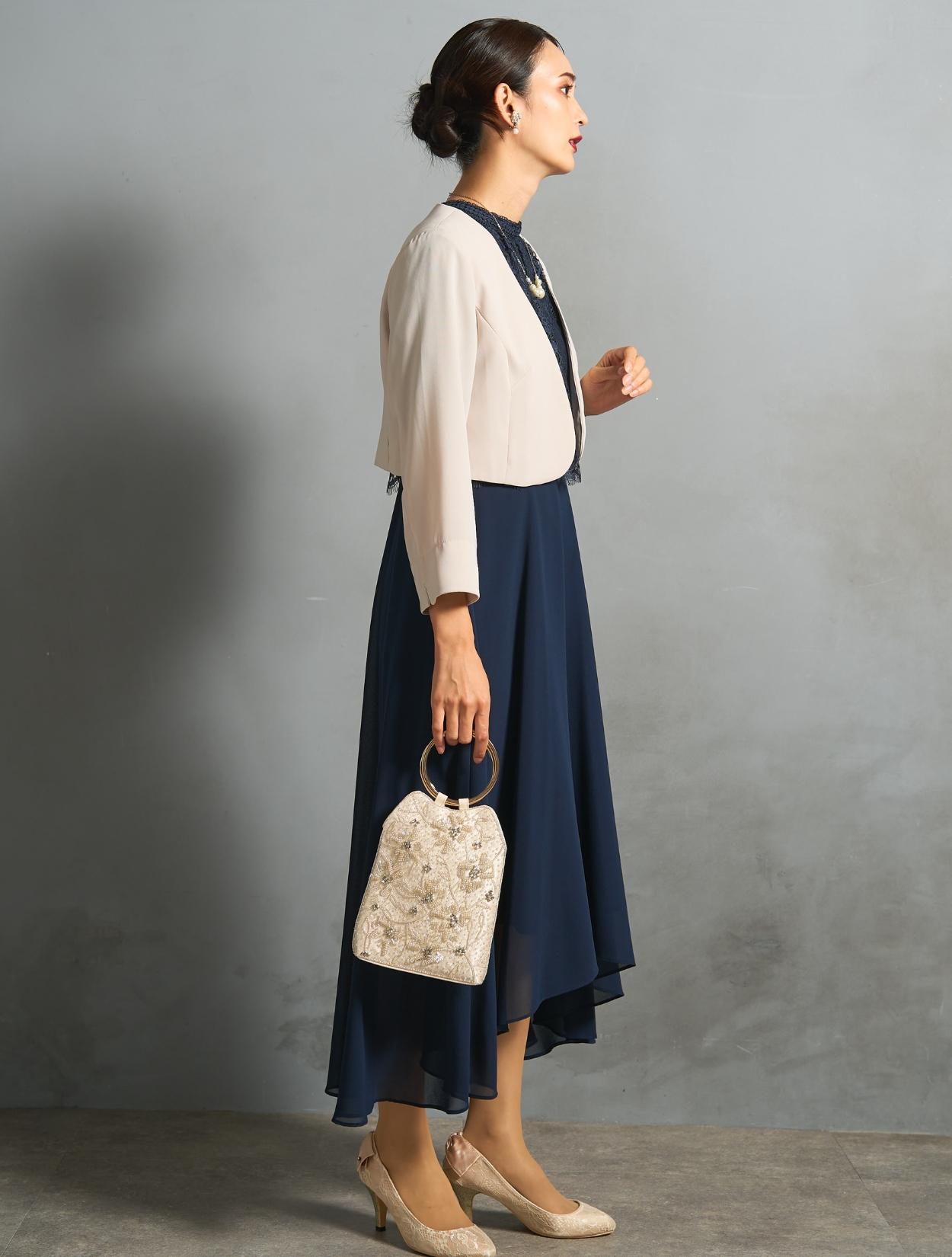 このセット商品は「ドレス・ジャケット・バッグ・ネックレス」の4点コーディネートセットです。