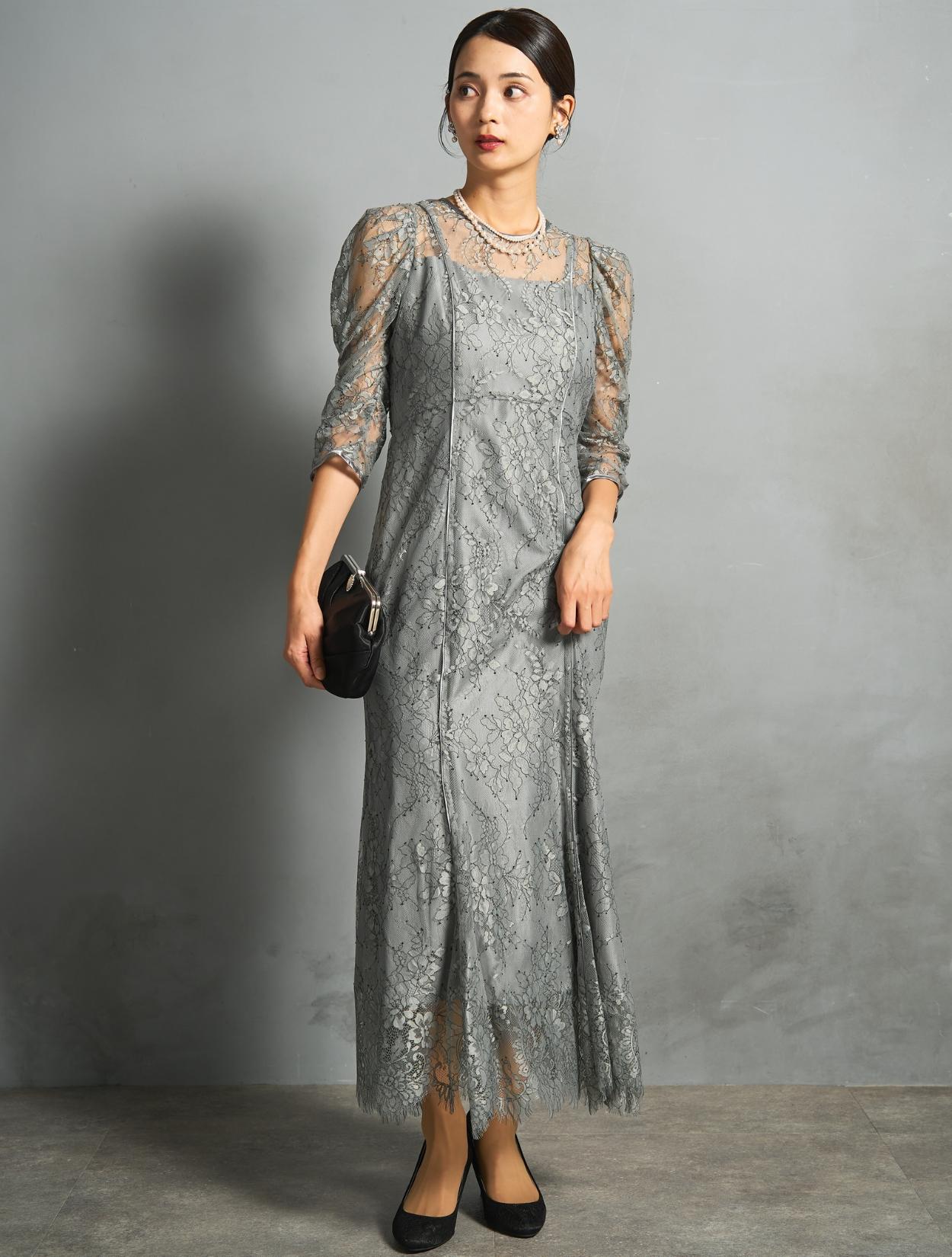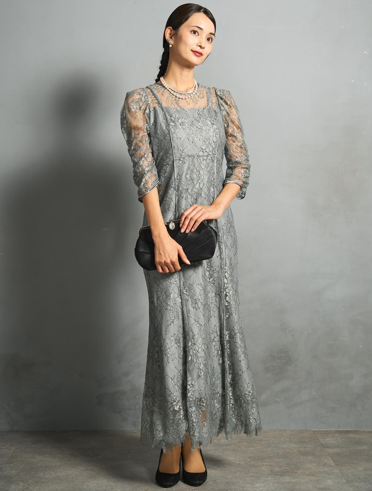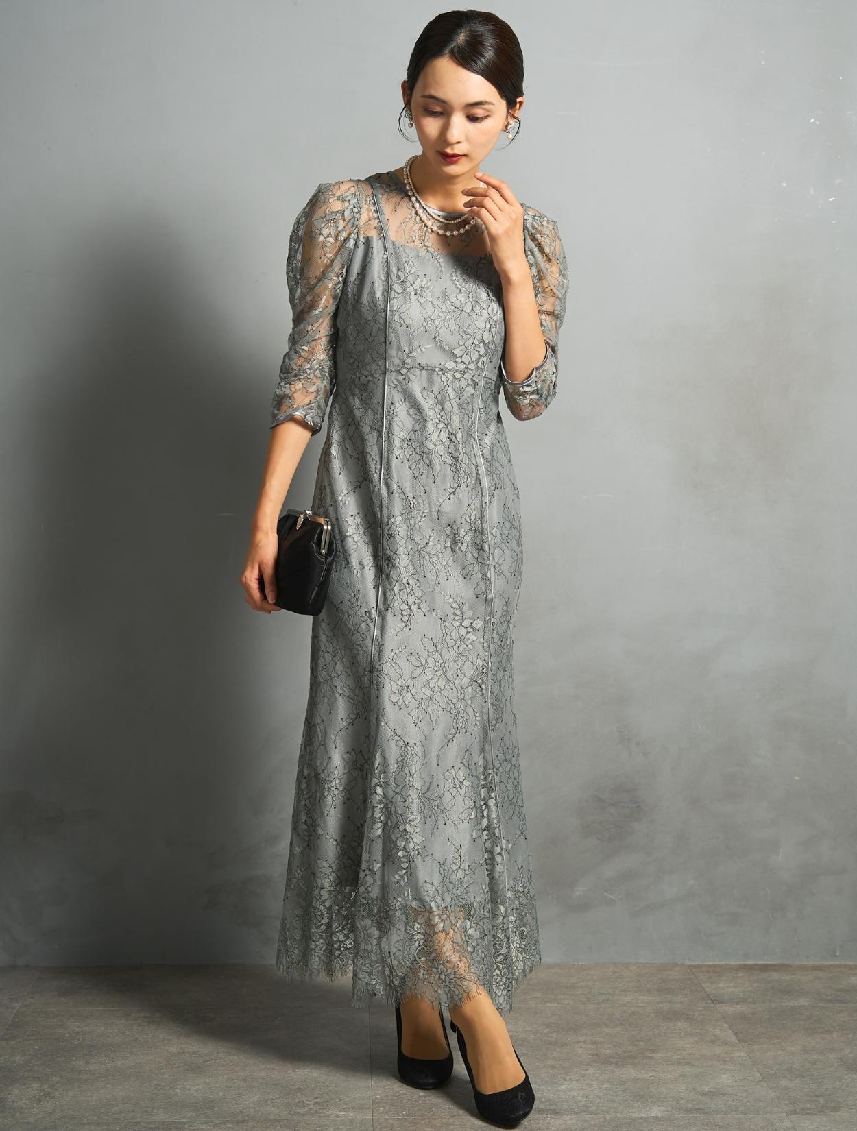 エレガントで大人っぽいマーメイドラインがポイントのロングドレス。すっきりスタイルを良く見せてくれるドレスです。フラワー柄の総レースなので華やかさもあり。スカラップ調にレースがカットされた裾は、動くと目を引くキレイめなデザイン。透け感がありロング丈でも軽やかに着こなせます。
