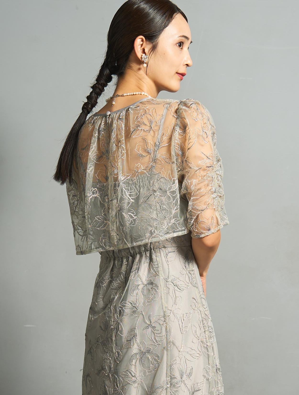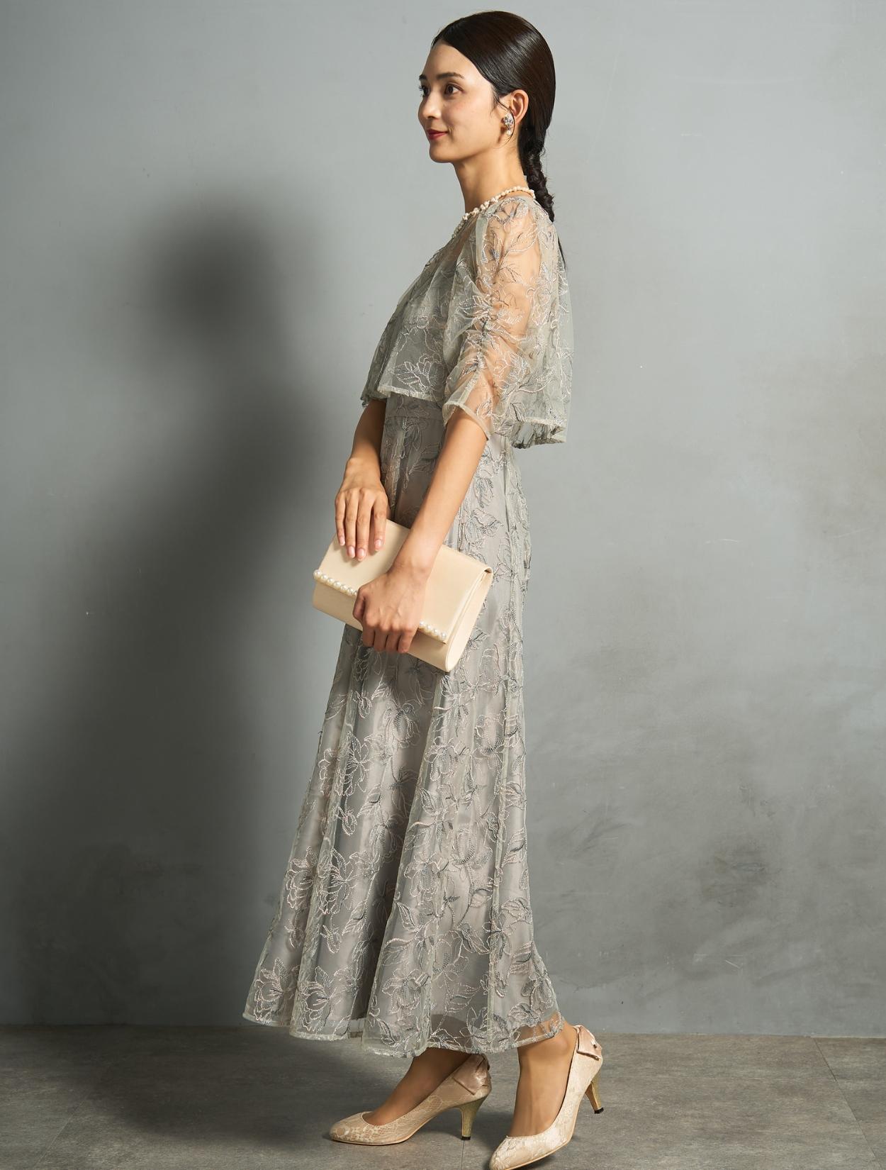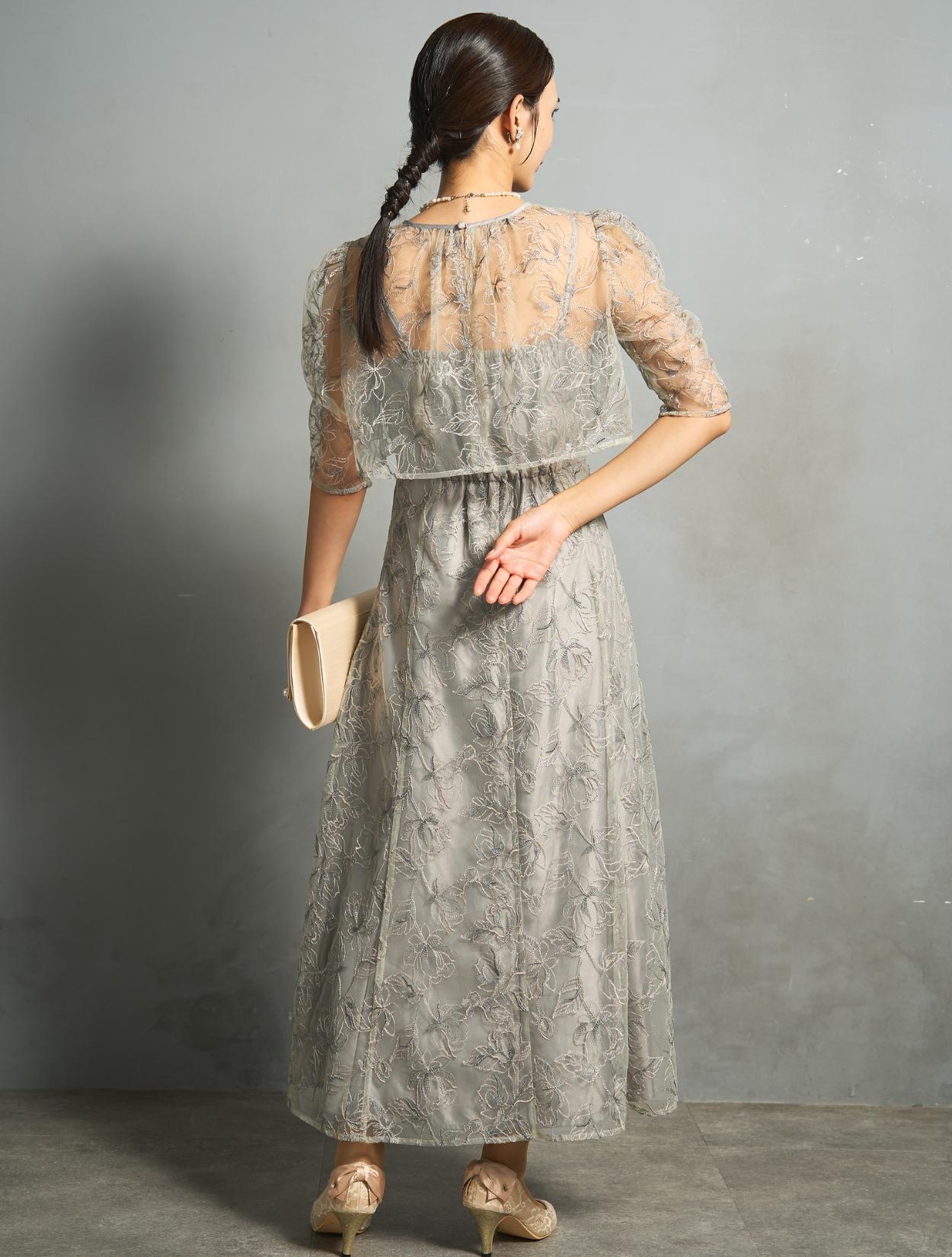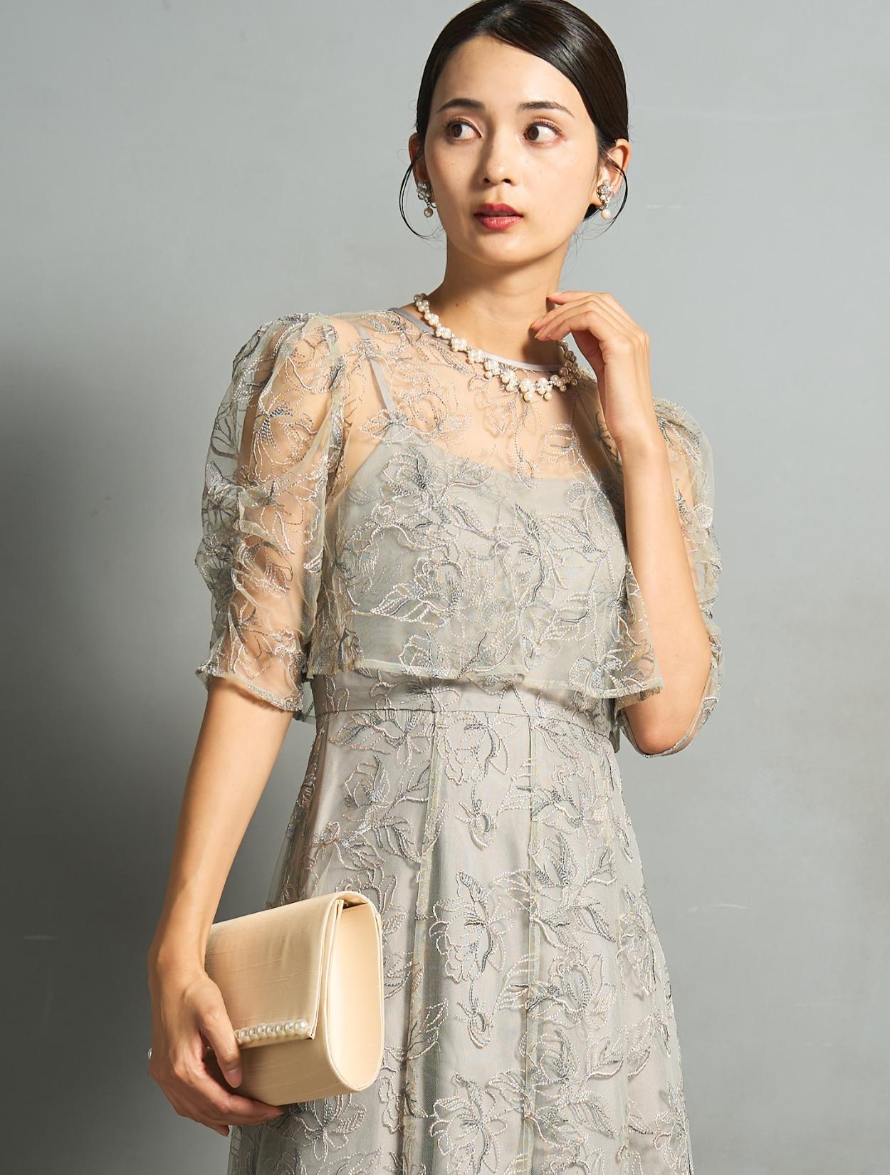 トレンド感のある総レースのレイヤードドレスは、20代30代におすすめです。チャコールグレーは華やかなドレスをお探しの40代にも◎。