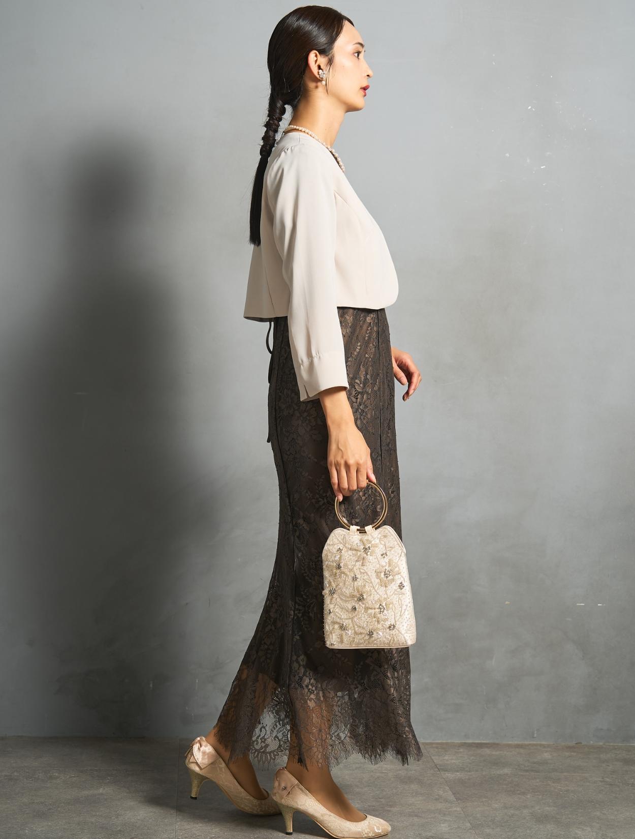 ※レースが使われているドレスは、アクセサリーやバッグのチェーンなど、引っかからない様ご注意ください。肩部分がレースのドレスは、バッグの肩掛けはご遠慮下さい。レースは繊細な素材なので、破れや傷みの原因になります。