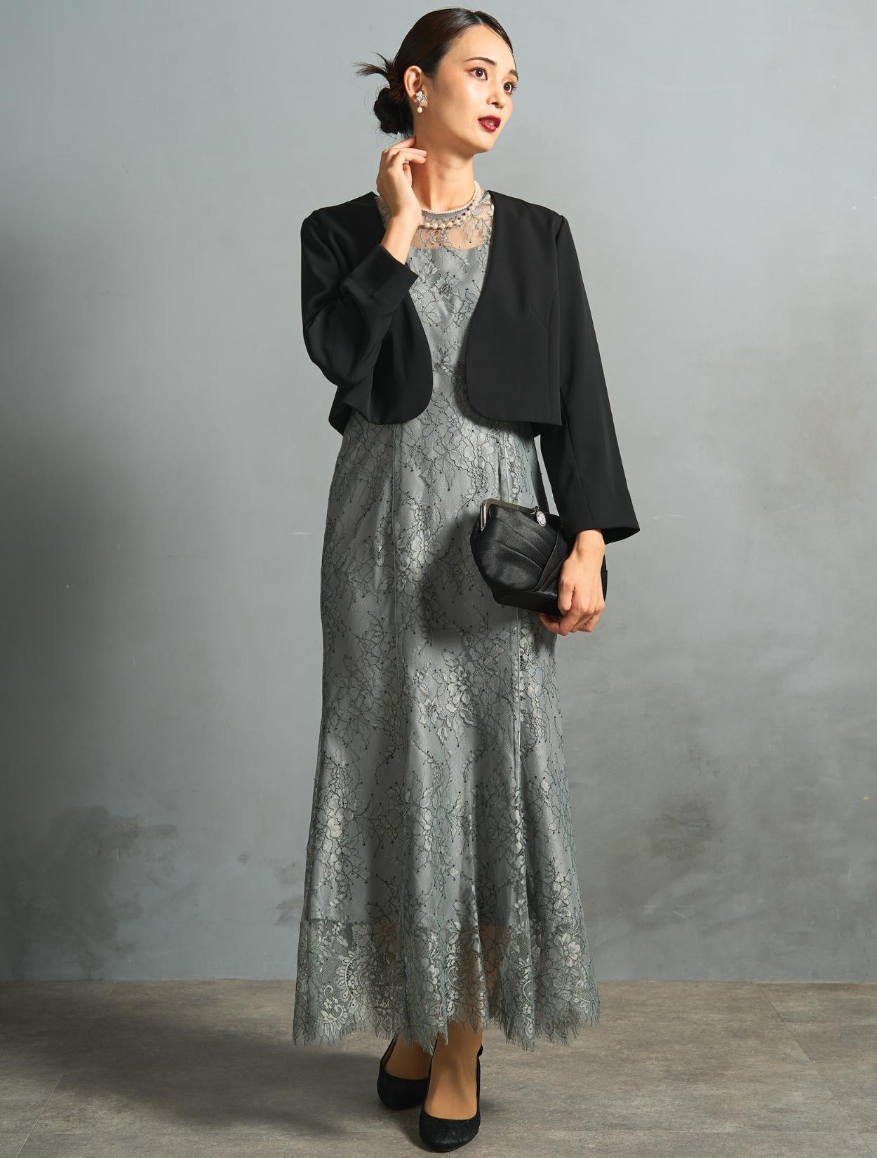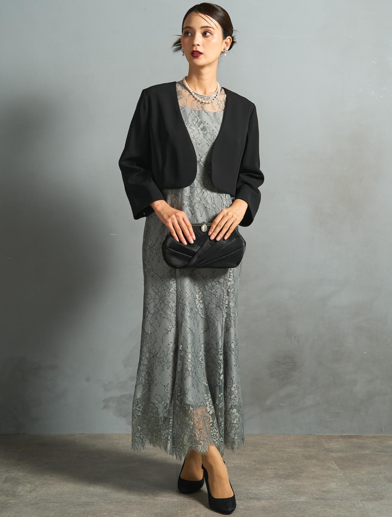 このセット商品は「ドレス・ジャケット・バッグ・ネックレス」の4点コーディネートセットです。