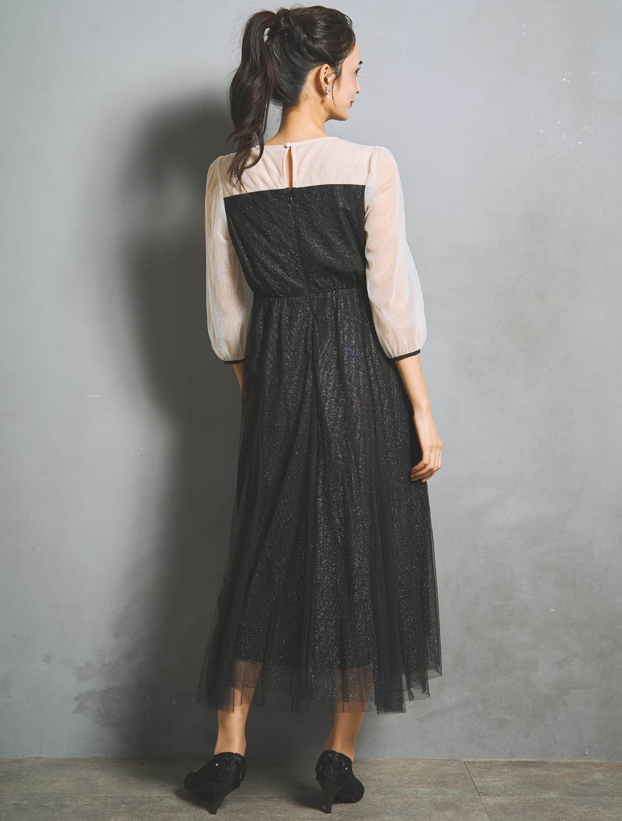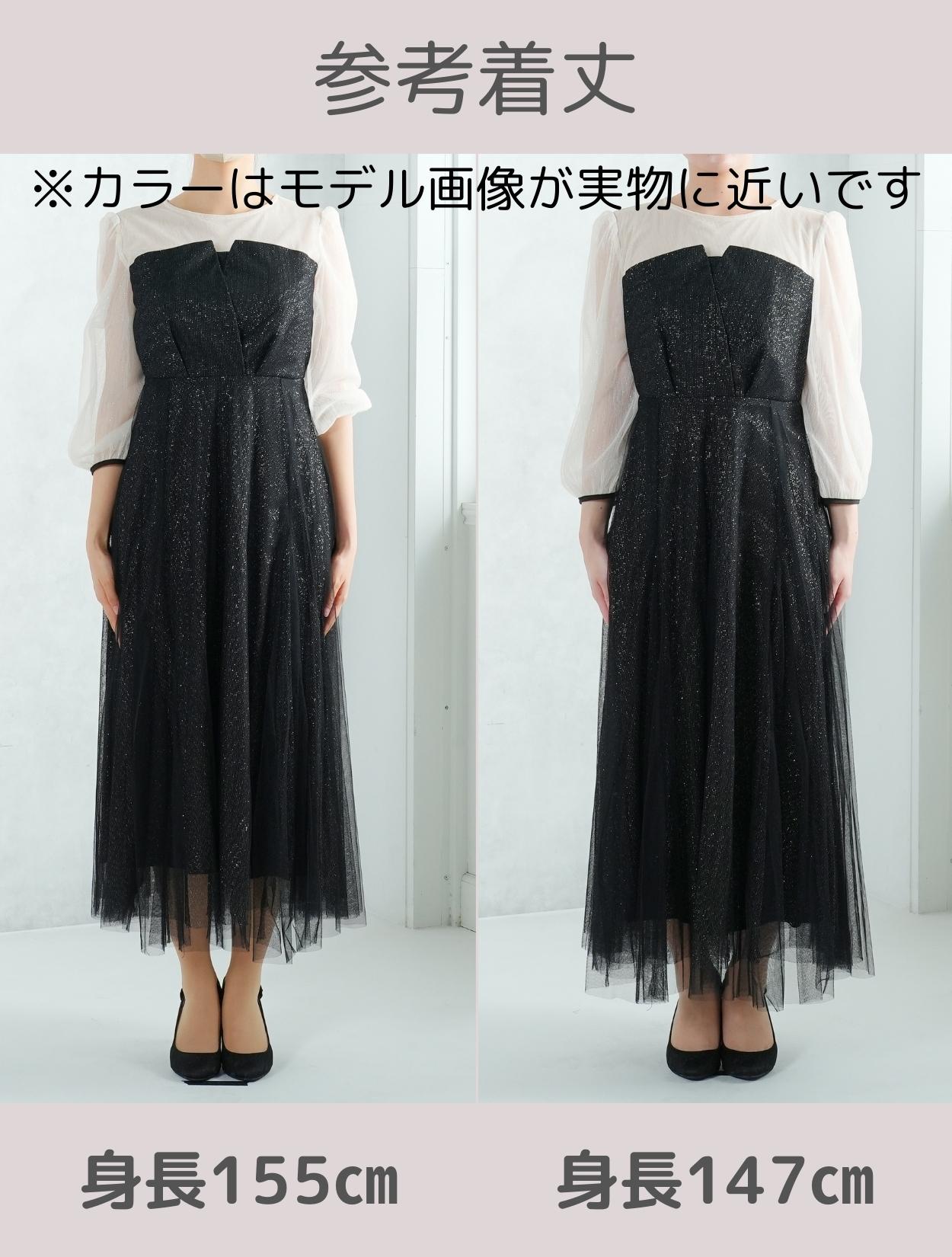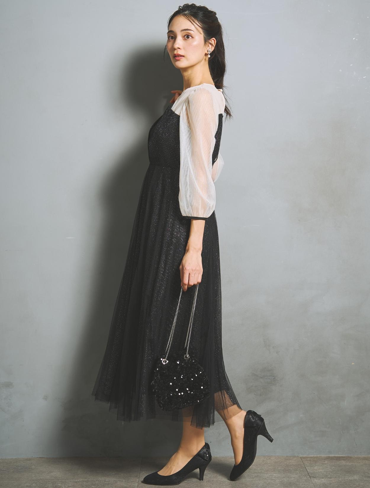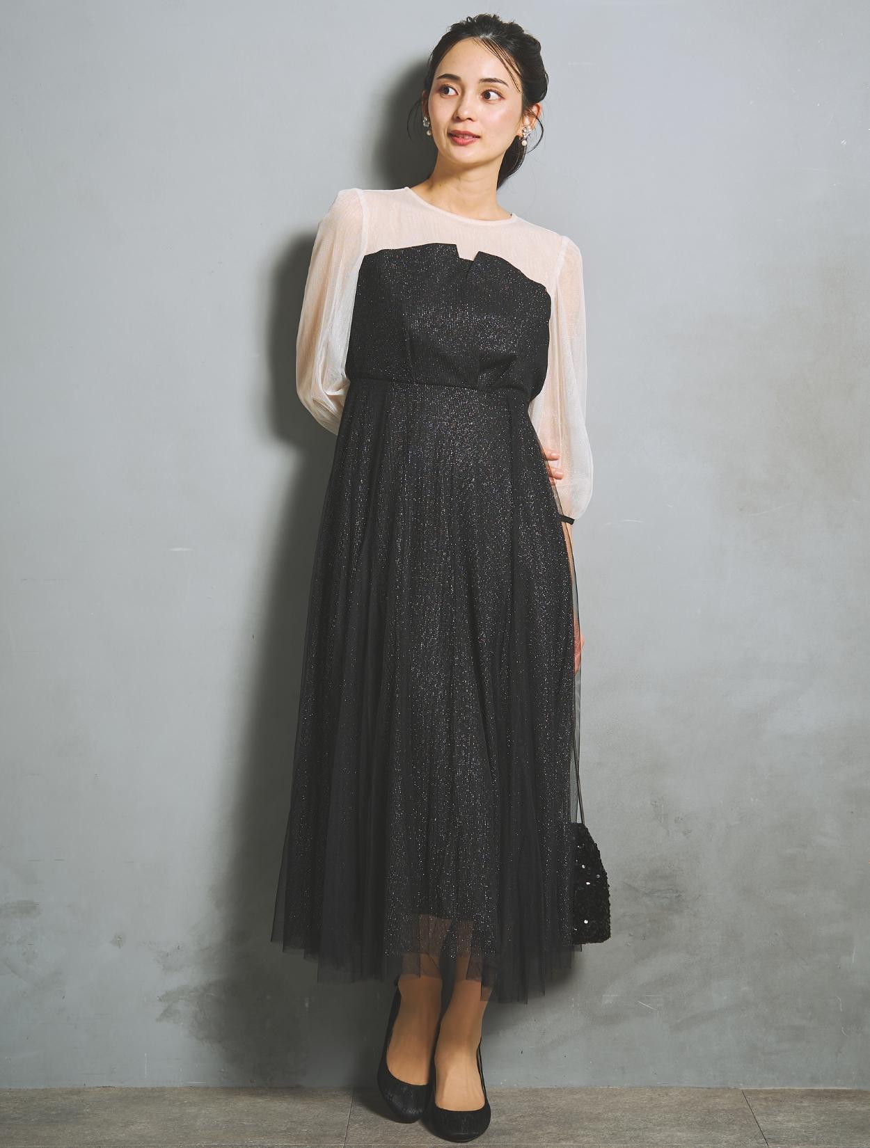 ラメチュールと無地チュールを重ねた、華やかでエアリー感たっぷりのドレス。歩くたびスカートがフワッと揺れて、軽やかに広がります。
