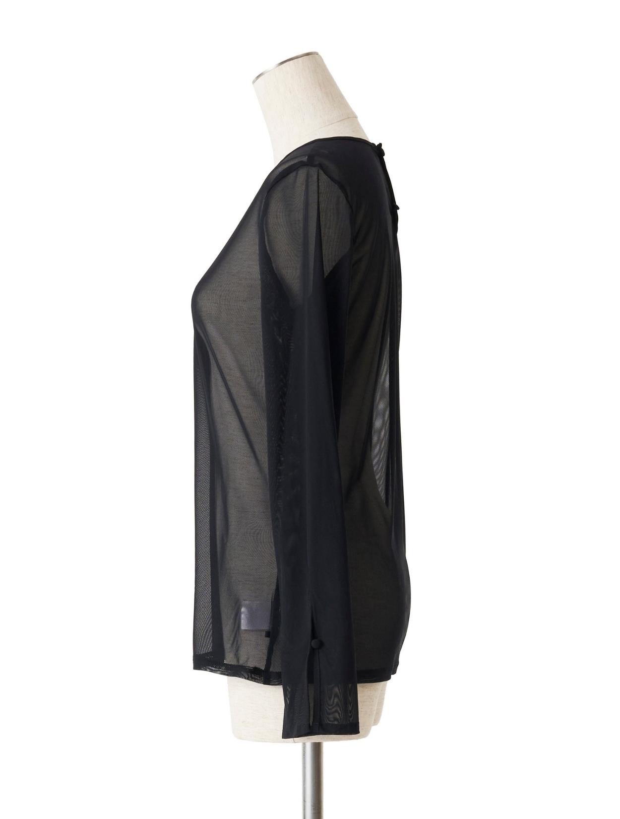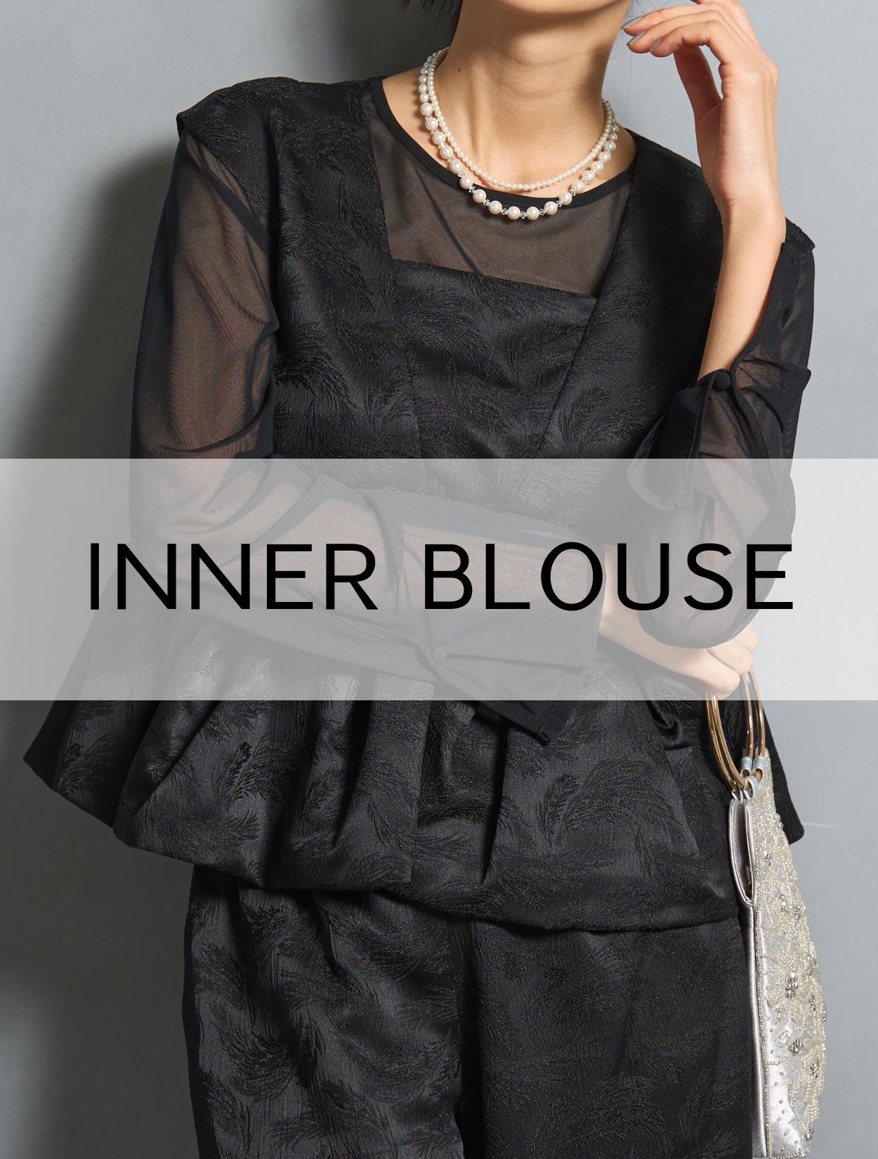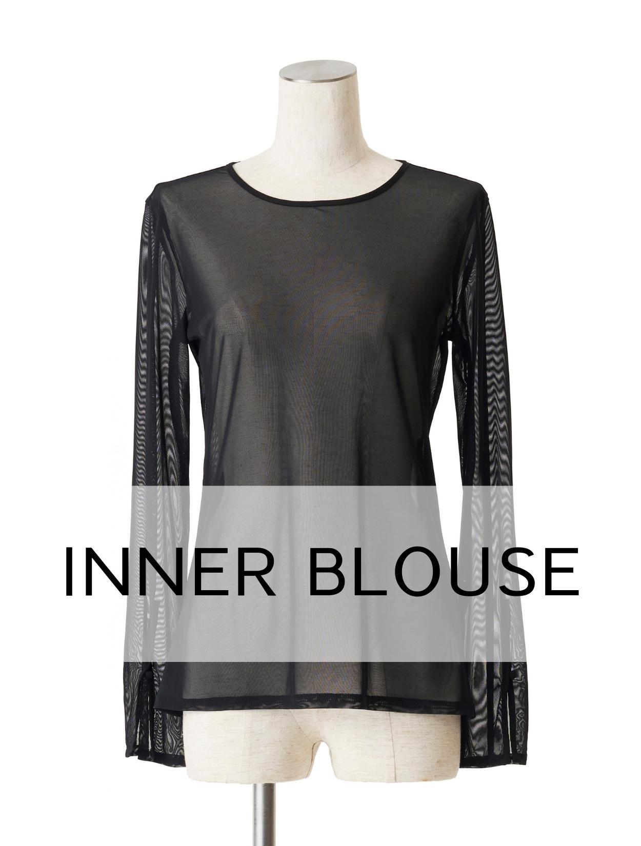 シンプルなブラックのインナーブラウス。ノースリーブドレスの中に着れば、露出を抑えた着こなしが可能です。