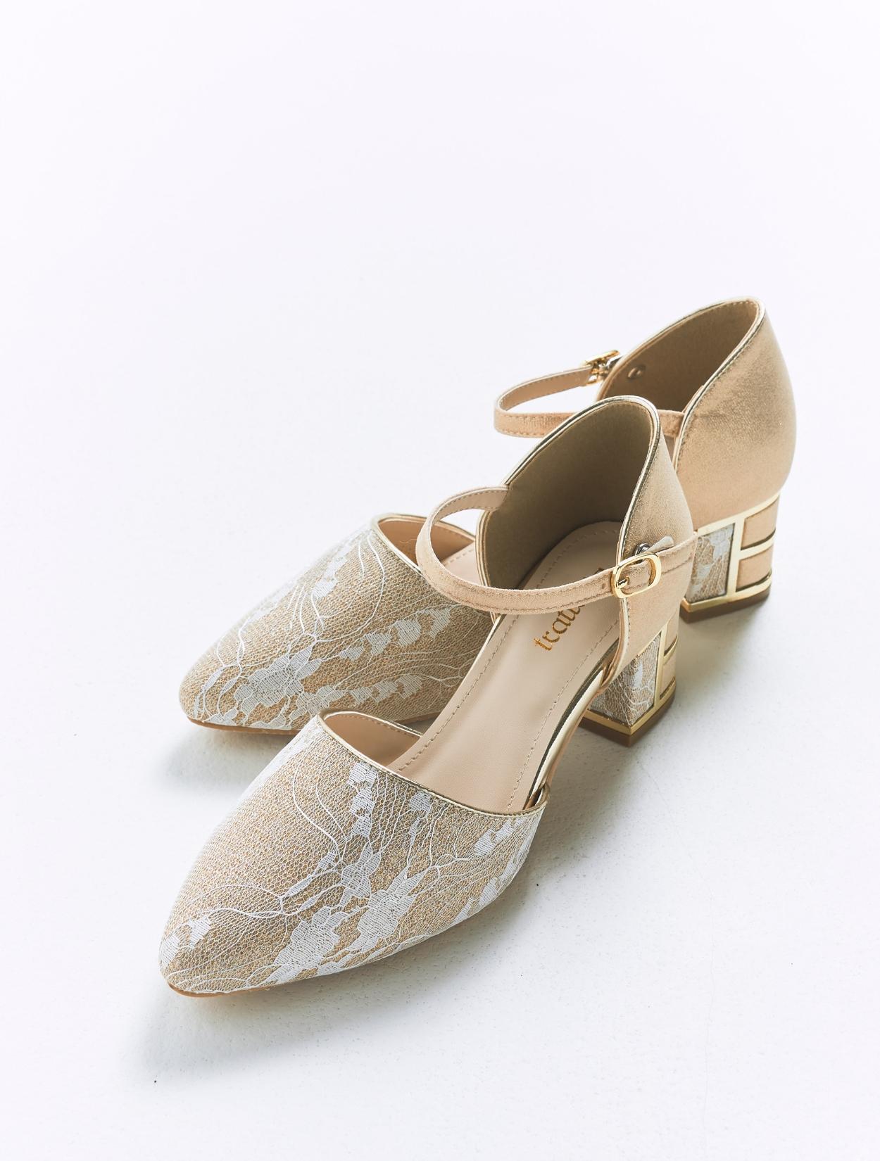 太めのチャンキーヒールは安定感も抜群!レース仕様なのでフォーマル感もちゃんとあります。