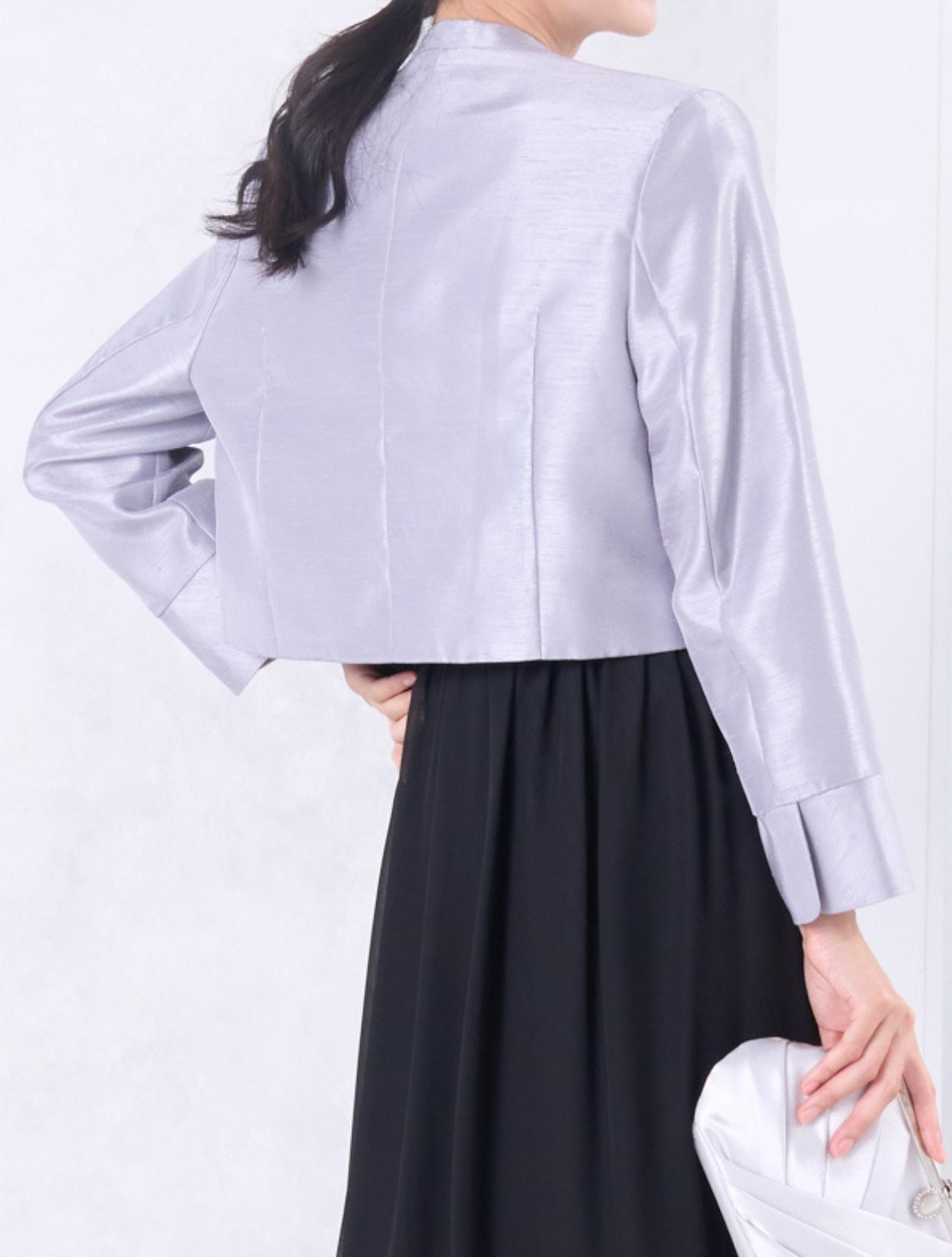 フォーマル感のあるシャンタン素材のジャケットは、親族コーデに人気のアイテムです。