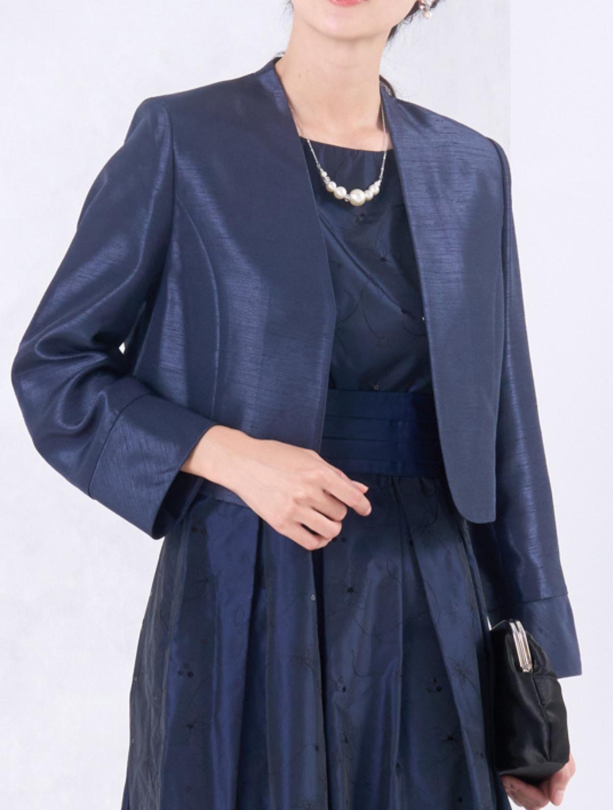 フォーマル感のあるシャンタン素材のジャケットは、親族コーデに人気のアイテムです。