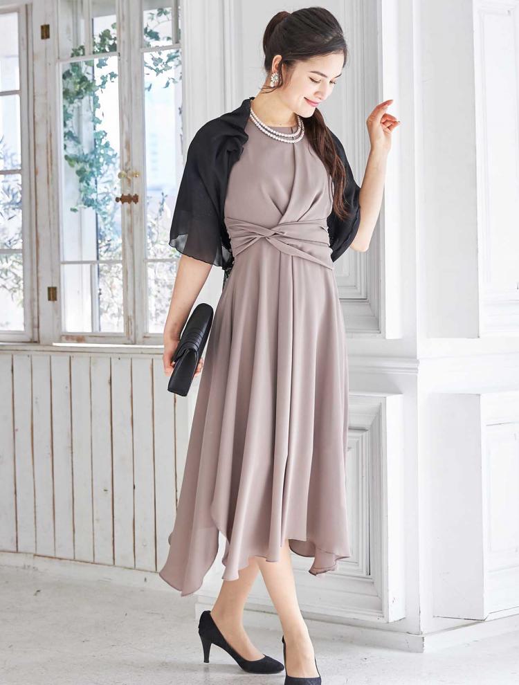 黒のワンピース、グレーのジャケット、パールのネックレス、ジャケットにあわせたバッグで、すべてピッタリその場に合い大変良かったです。 すっきり見えて好評でした。