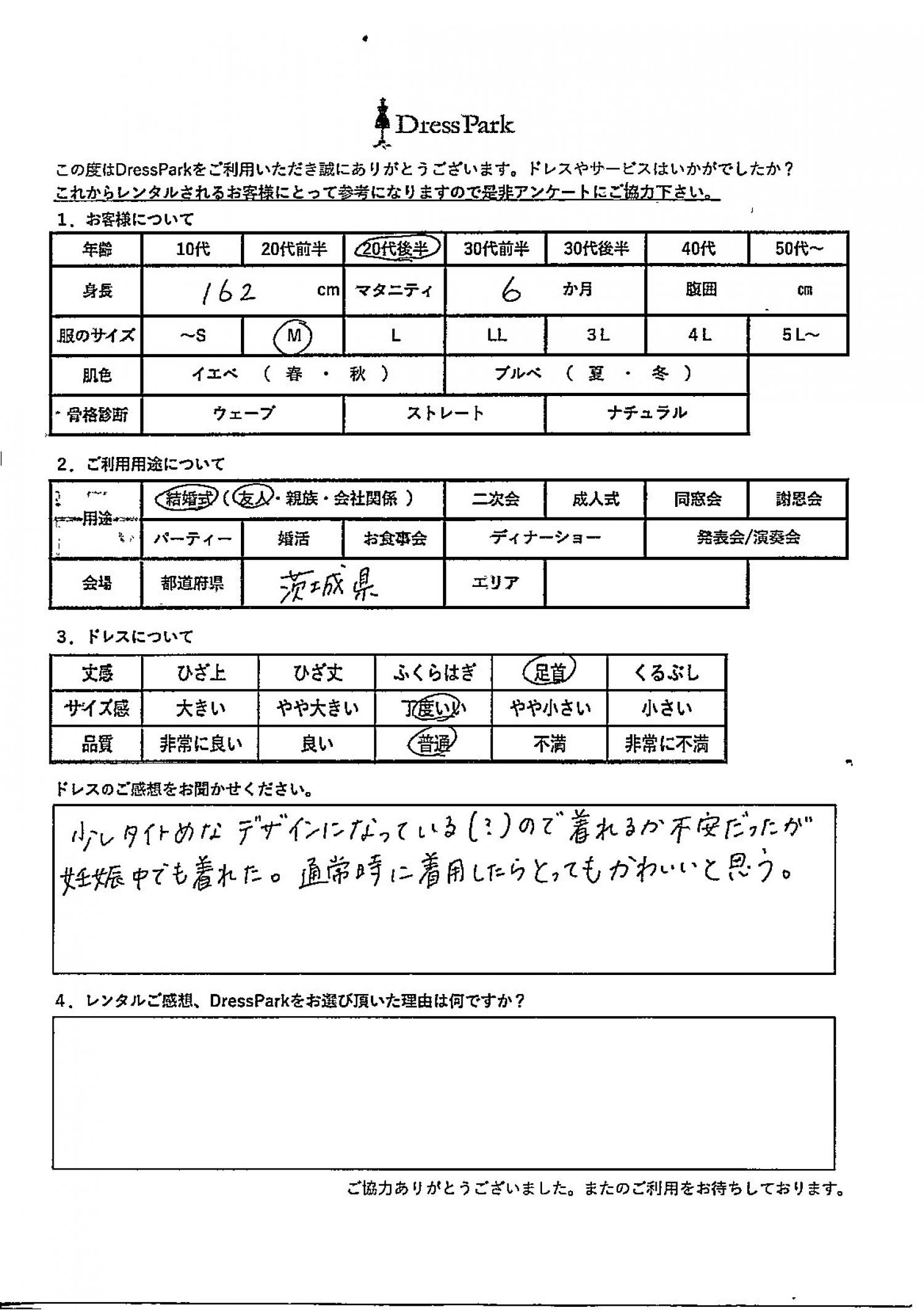 茨城県 M.I様162㎝ Mサイズ マタニティ #20代#M/L#160~164㎝#結婚式(友人)#茨城県 ◆レンタルしたドレスはこちら ◆レンタルしたサイズは:M ◆レンタルした日付:2025/06/14 ドレスの着用感 ◆点数: (3点) ◆丈感:足首 ◆サイズ感:丁度いい ◆品質:普通 ◆マタニティ: ドレスの感想 少しタイトめなデザインになっているので着れるか不安だったが妊娠中でも着れた。通常時に着用したらとってもかわいいと思う。 CUSTOMER REVIEWS お客様の声 気になるカテゴリー別にご利用の感想をチェック! ◆AGE 年代で見る 10代 20代 30代 40代 50代~ ◆SIZE サイズで見る SS/S M/L 大きいサイズLL~ ◆HIGHT 身長で見る 140~149㎝ 150~154㎝ 155~159㎝ 160~164㎝ 165~169㎝ 170㎝以上 ◆マタニティ ~3か月 4~6か月 7~8か月 9~10か月 ◆肌色 イエベ ブルべ ◆骨格診断 ウェーブ ストレート ナチュラル ◆利用シーン 結婚式(友人) 結婚式(親族) 結婚式(会社関係) 二次会 成人式 謝恩会 パーティー その他 CUSTOMER REVIEWS都道府県別お客様の声 都道府県別にのお客様の声をチェック! 北海道 青森県 岩手県 宮城県 秋田県 山形県 福島県 茨城県 栃木県 群馬県 埼玉県 千葉県 東京都 神奈川県 新潟県 富山県 石川県 福井県 山梨県 長野県 岐阜県 静岡県 愛知県 三重県 滋賀県 京都府 大阪府 兵庫県 奈良県 和歌山県 鳥取県 島根県 岡山県 広島県 山口県 徳島県 香川県 愛媛県 高知県 福岡県 佐賀県 長崎県 熊本県 大分県 宮崎県 鹿児島県 沖縄県 CUSTOMER REVIEWSエリア別お客様の声 都道府県別にのお客様の声をチェック! 札幌 仙台 名古屋 軽井沢 金沢 神戸・芦屋 博多 那覇 梅田・新大阪 難波・心斎橋 鎌倉・湘南 横浜・みなとみらい 舞浜・浦安・幕張 大宮・浦和 青山・表参道 六本木・麻布 渋谷・恵比寿 新宿 池袋 銀座・丸の内 お台場・汐留 鹿児島市 郡山市 福島市 東予 甲府・石和 LINEでお問い合わせ このサイトではJavaScriptを使用しています