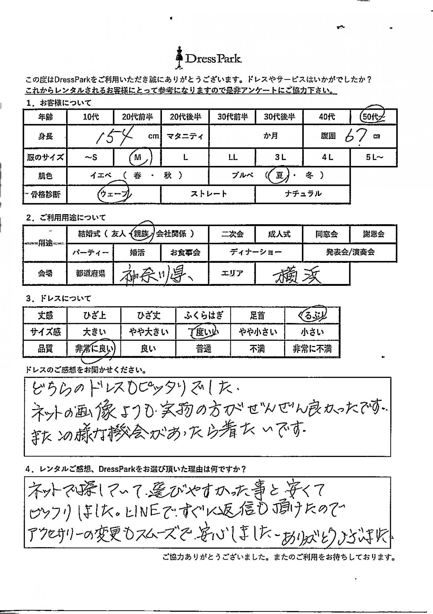 どちらのドレスもピッタリでした。ネットの画像よりも、実物の方が全然良かったです。またこの様な機会があったら着たいです。