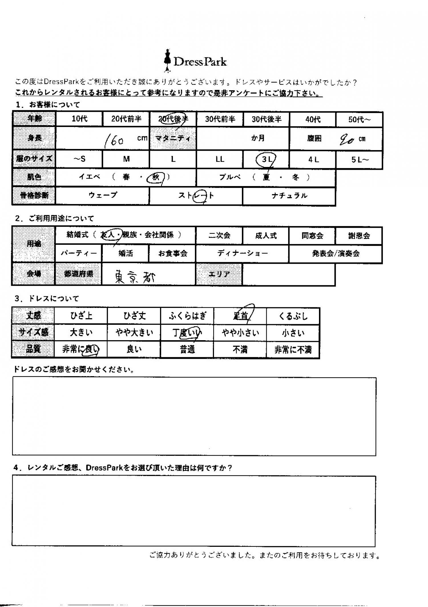 東京都 K.N様160㎝ 3Lサイズ