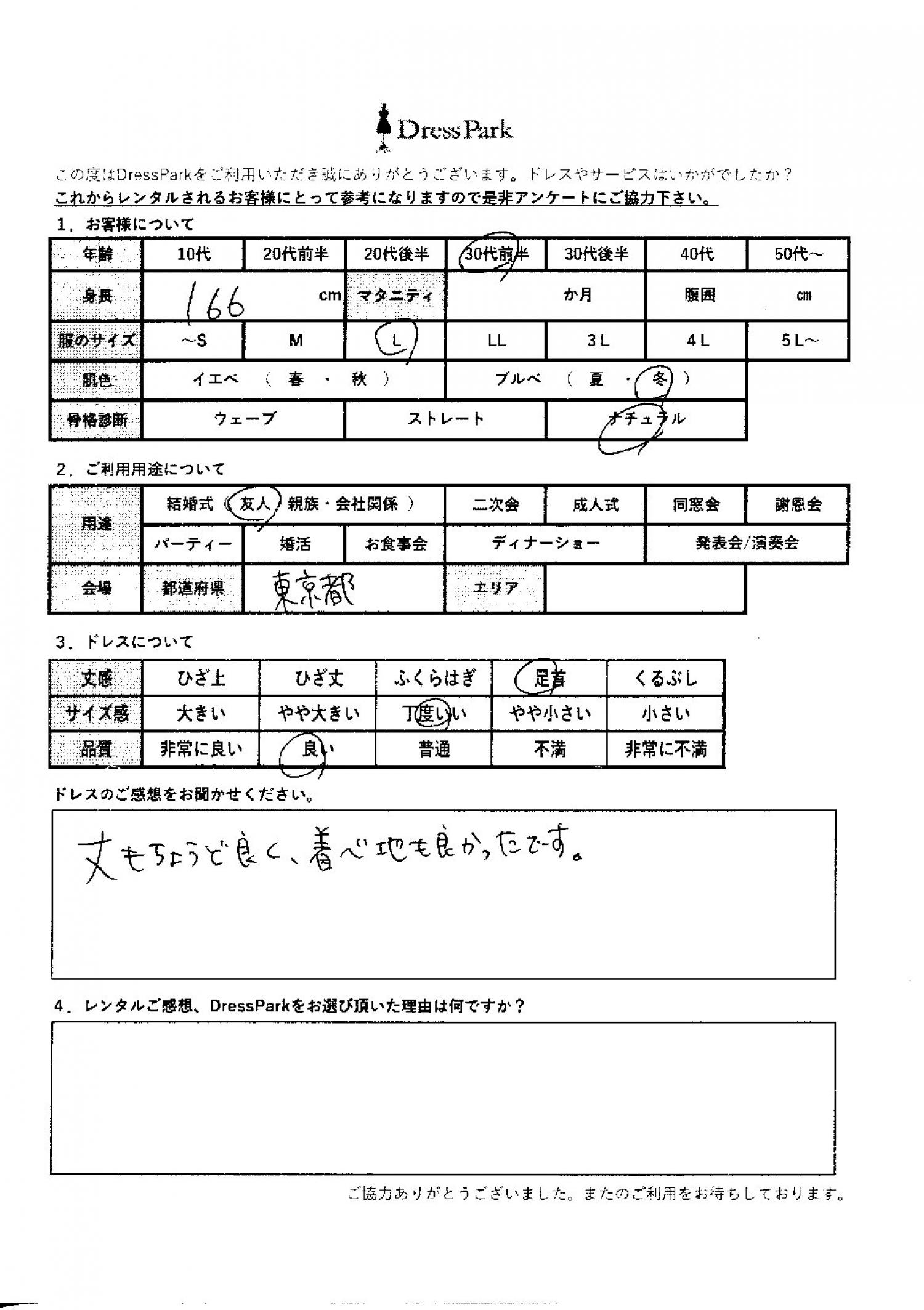 東京都 Y.E様166㎝ Lサイズ #30代#M/L#165~169㎝#結婚式(友人)#東京都 ◆レンタルしたドレスはこちら ◆レンタルしたサイズは:L ◆レンタルした日付:2025/09/20 ドレスの着用感 ◆点数: (4点) ◆丈感:足首 ◆サイズ感:丁度いい ◆品質:良い ◆肌色:ブルべ ◆骨格診断:ナチュラル ドレスの感想 丈もちょうど良く、着心地も良かったです。 CUSTOMER REVIEWS お客様の声 気になるカテゴリー別にご利用の感想をチェック! ◆AGE 年代で見る 10代 20代 30代 40代 50代~ ◆SIZE サイズで見る SS/S M/L 大きいサイズLL~ ◆HIGHT 身長で見る 140~149㎝ 150~154㎝ 155~159㎝ 160~164㎝ 165~169㎝ 170㎝以上 ◆マタニティ ~3か月 4~6か月 7~8か月 9~10か月 ◆肌色 イエベ ブルべ ◆骨格診断 ウェーブ ストレート ナチュラル ◆利用シーン 結婚式(友人) 結婚式(親族) 結婚式(会社関係) 二次会 成人式 謝恩会 パーティー その他 CUSTOMER REVIEWS都道府県別お客様の声 都道府県別にのお客様の声をチェック! 北海道 青森県 岩手県 宮城県 秋田県 山形県 福島県 茨城県 栃木県 群馬県 埼玉県 千葉県 東京都 神奈川県 新潟県 富山県 石川県 福井県 山梨県 長野県 岐阜県 静岡県 愛知県 三重県 滋賀県 京都府 大阪府 兵庫県 奈良県 和歌山県 鳥取県 島根県 岡山県 広島県 山口県 徳島県 香川県 愛媛県 高知県 福岡県 佐賀県 長崎県 熊本県 大分県 宮崎県 鹿児島県 沖縄県 CUSTOMER REVIEWSエリア別お客様の声 都道府県別にのお客様の声をチェック! 札幌 仙台 名古屋 軽井沢 金沢 神戸・芦屋 博多 那覇 梅田・新大阪 難波・心斎橋 鎌倉・湘南 横浜・みなとみらい 舞浜・浦安・幕張 大宮・浦和 青山・表参道 六本木・麻布 渋谷・恵比寿 新宿 池袋 銀座・丸の内 お台場・汐留 鹿児島市 郡山市 福島市 東予 甲府・石和 LINEでお問い合わせ このサイトではJavaScriptを使用しています