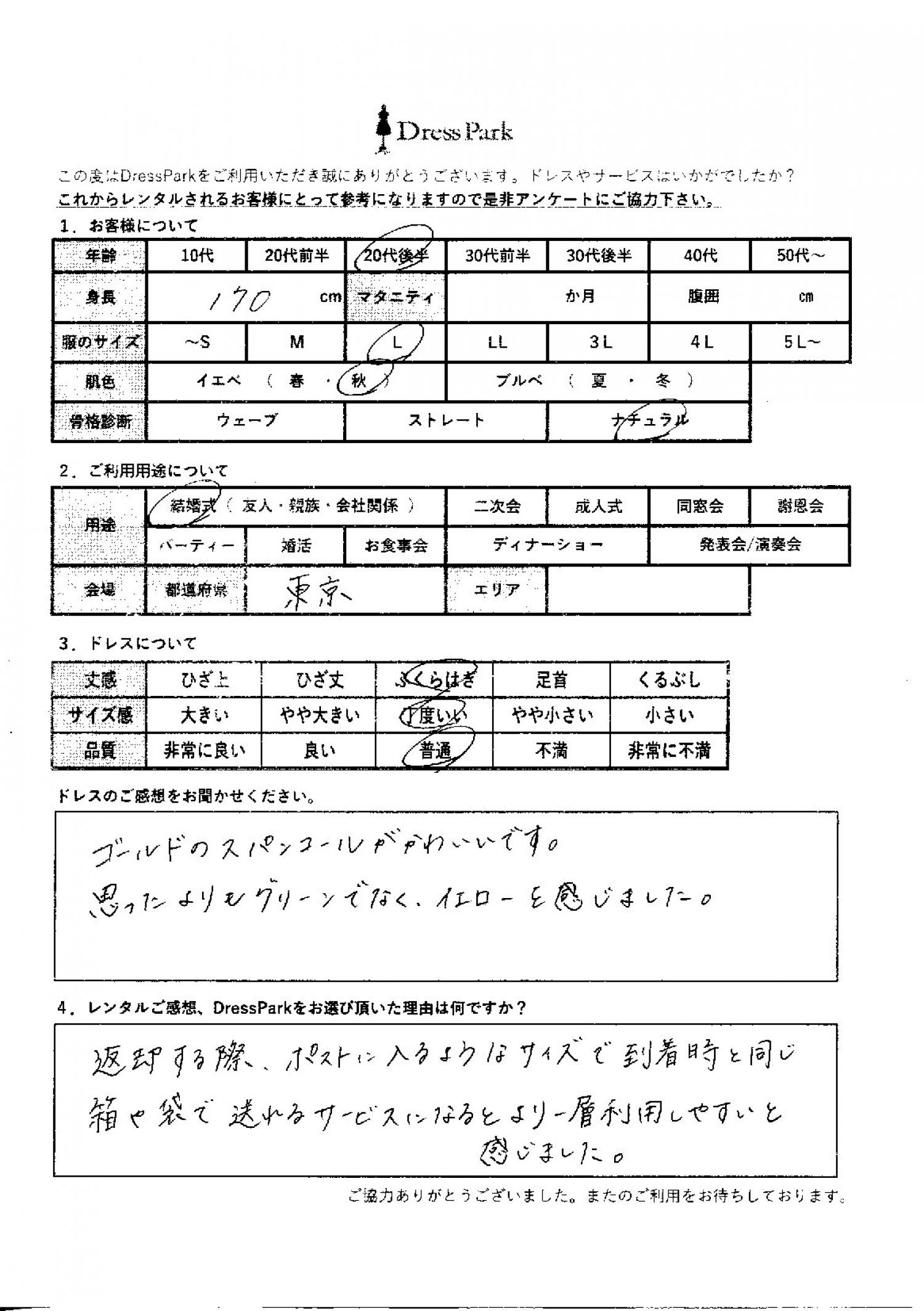 東京都 S.K様170㎝ Lサイズ