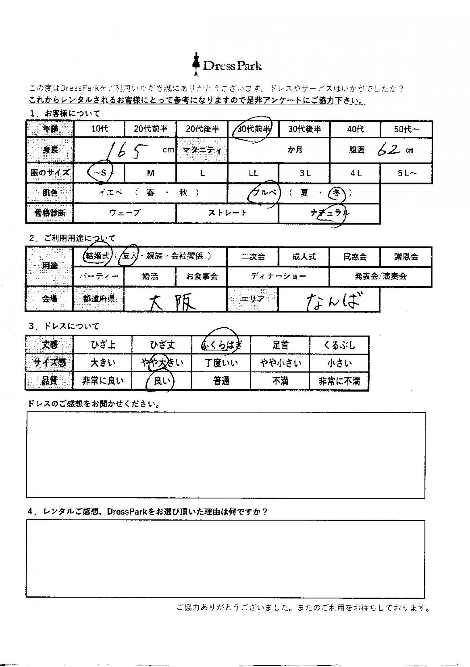 大阪府 S.U様165㎝ ~Sサイズ難波・心斎橋
