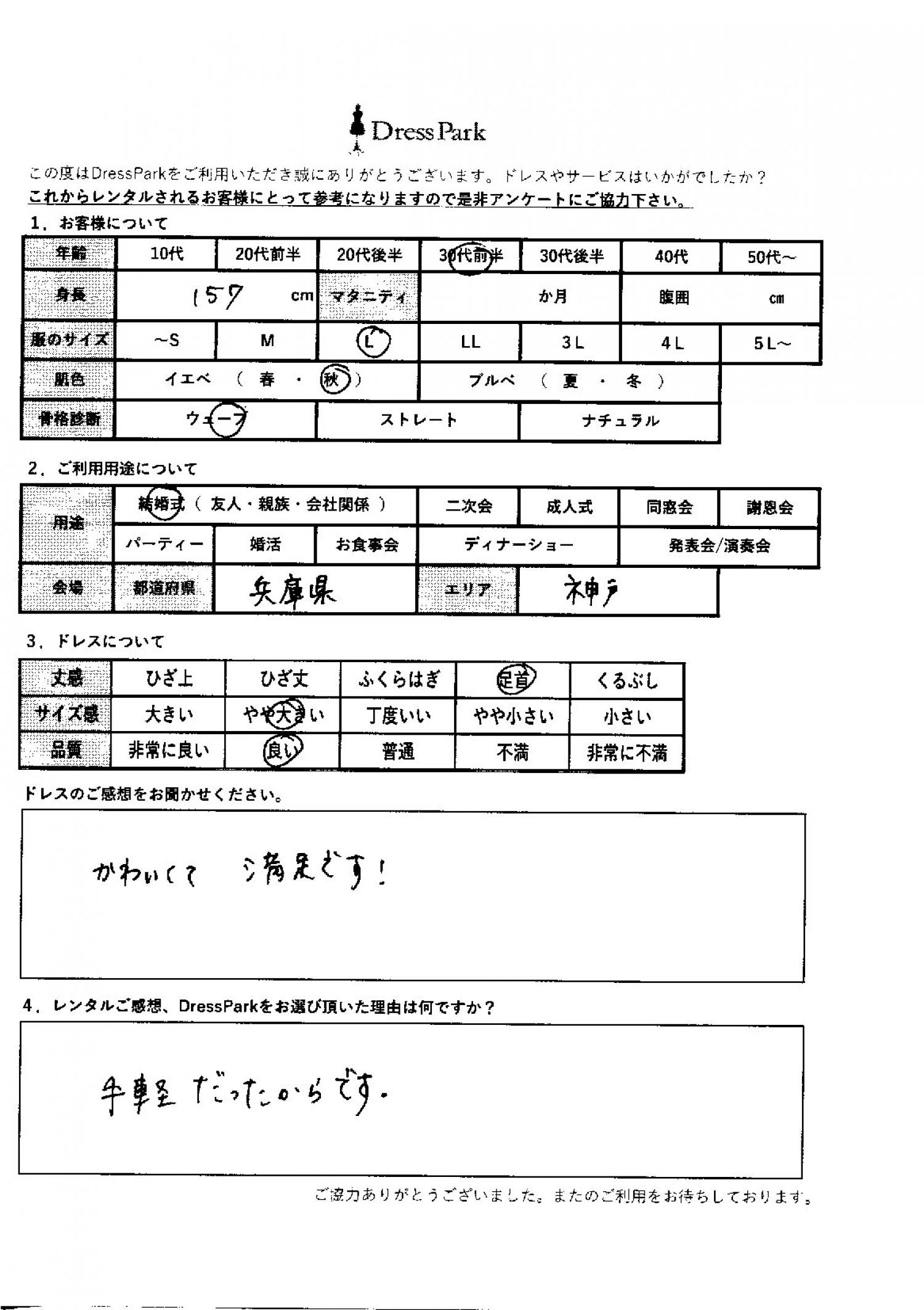 兵庫県 R.S様157㎝ Lサイズ神戸・芦屋 #30代#M/L#155~159㎝#結婚式(友人)#兵庫県#神戸・芦屋 ◆レンタルしたドレスはこちら ◆レンタルしたサイズは:L ◆レンタルした日付:2025/10/04 ドレスの着用感 ◆点数: (4点) ◆丈感:足首 ◆サイズ感:やや大きい ◆品質:良い ◆肌色:イエベ ◆骨格診断:ウェーブ ドレスの感想 可愛くて、満足です! レンタルのご感想、DressParkをお選び頂いた理由 手軽だったからです。 CUSTOMER REVIEWS お客様の声 気になるカテゴリー別にご利用の感想をチェック! ◆AGE 年代で見る 10代 20代 30代 40代 50代~ ◆SIZE サイズで見る SS/S M/L 大きいサイズLL~ ◆HIGHT 身長で見る 140~149㎝ 150~154㎝ 155~159㎝ 160~164㎝ 165~169㎝ 170㎝以上 ◆マタニティ ~3か月 4~6か月 7~8か月 9~10か月 ◆肌色 イエベ ブルべ ◆骨格診断 ウェーブ ストレート ナチュラル ◆利用シーン 結婚式(友人) 結婚式(親族) 結婚式(会社関係) 二次会 成人式 謝恩会 パーティー その他 CUSTOMER REVIEWS都道府県別お客様の声 都道府県別にのお客様の声をチェック! 北海道 青森県 岩手県 宮城県 秋田県 山形県 福島県 茨城県 栃木県 群馬県 埼玉県 千葉県 東京都 神奈川県 新潟県 富山県 石川県 福井県 山梨県 長野県 岐阜県 静岡県 愛知県 三重県 滋賀県 京都府 大阪府 兵庫県 奈良県 和歌山県 鳥取県 島根県 岡山県 広島県 山口県 徳島県 香川県 愛媛県 高知県 福岡県 佐賀県 長崎県 熊本県 大分県 宮崎県 鹿児島県 沖縄県 CUSTOMER REVIEWSエリア別お客様の声 都道府県別にのお客様の声をチェック! 札幌 仙台 名古屋 軽井沢 金沢 神戸・芦屋 博多 那覇 梅田・新大阪 難波・心斎橋 鎌倉・湘南 横浜・みなとみらい 舞浜・浦安・幕張 大宮・浦和 青山・表参道 六本木・麻布 渋谷・恵比寿 新宿 池袋 銀座・丸の内 お台場・汐留 鹿児島市 郡山市 福島市 東予 甲府・石和 LINEでお問い合わせ このサイトではJavaScriptを使用しています
