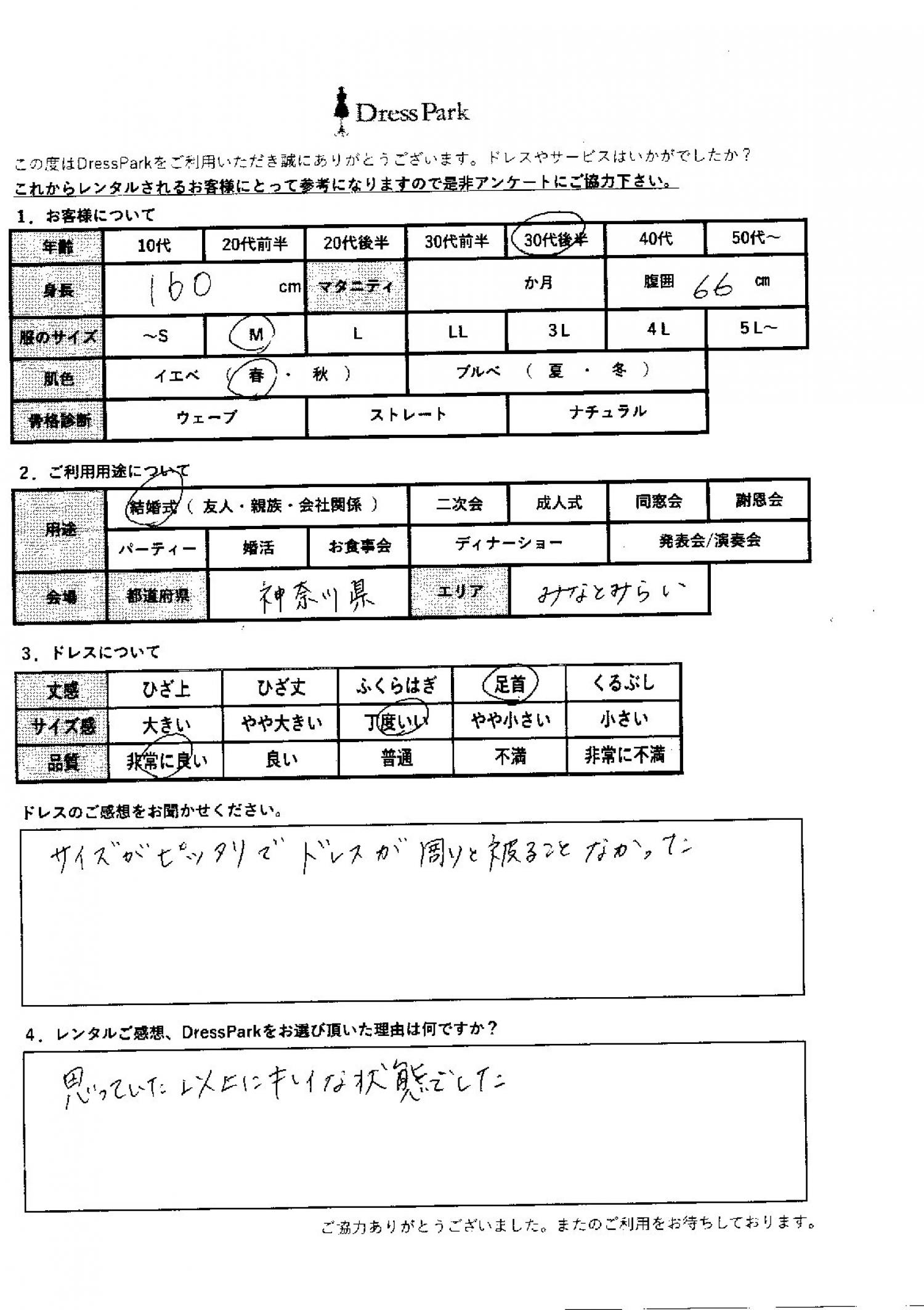 神奈川県 M.T様160㎝ Mサイズ横浜・みなとみらい #30代#M/L#160~164㎝#結婚式(友人)#神奈川県#横浜・みなとみらい ◆レンタルしたドレスはこちら ◆レンタルしたサイズは:M ◆レンタルした日付:2025/10/11 ドレスの着用感 ◆点数: (5点) ◆丈感:足首 ◆サイズ感:丁度いい ◆品質:非常に良い ◆肌色:イエベ ドレスの感想 サイズがぴったりでドレスが周りと被ることなかった。 思っていた以上に綺麗な状態でした。 CUSTOMER REVIEWS お客様の声 気になるカテゴリー別にご利用の感想をチェック! ◆AGE 年代で見る 10代 20代 30代 40代 50代~ ◆SIZE サイズで見る SS/S M/L 大きいサイズLL~ ◆HIGHT 身長で見る 140~149㎝ 150~154㎝ 155~159㎝ 160~164㎝ 165~169㎝ 170㎝以上 ◆マタニティ ~3か月 4~6か月 7~8か月 9~10か月 ◆肌色 イエベ ブルべ ◆骨格診断 ウェーブ ストレート ナチュラル ◆利用シーン 結婚式(友人) 結婚式(親族) 結婚式(会社関係) 二次会 成人式 謝恩会 パーティー その他 CUSTOMER REVIEWS都道府県別お客様の声 都道府県別にのお客様の声をチェック! 北海道 青森県 岩手県 宮城県 秋田県 山形県 福島県 茨城県 栃木県 群馬県 埼玉県 千葉県 東京都 神奈川県 新潟県 富山県 石川県 福井県 山梨県 長野県 岐阜県 静岡県 愛知県 三重県 滋賀県 京都府 大阪府 兵庫県 奈良県 和歌山県 鳥取県 島根県 岡山県 広島県 山口県 徳島県 香川県 愛媛県 高知県 福岡県 佐賀県 長崎県 熊本県 大分県 宮崎県 鹿児島県 沖縄県 CUSTOMER REVIEWSエリア別お客様の声 都道府県別にのお客様の声をチェック! 札幌 仙台 名古屋 軽井沢 金沢 神戸・芦屋 博多 那覇 梅田・新大阪 難波・心斎橋 鎌倉・湘南 横浜・みなとみらい 舞浜・浦安・幕張 大宮・浦和 青山・表参道 六本木・麻布 渋谷・恵比寿 新宿 池袋 銀座・丸の内 お台場・汐留 鹿児島市 郡山市 福島市 東予 甲府・石和 LINEでお問い合わせ このサイトではJavaScriptを使用しています