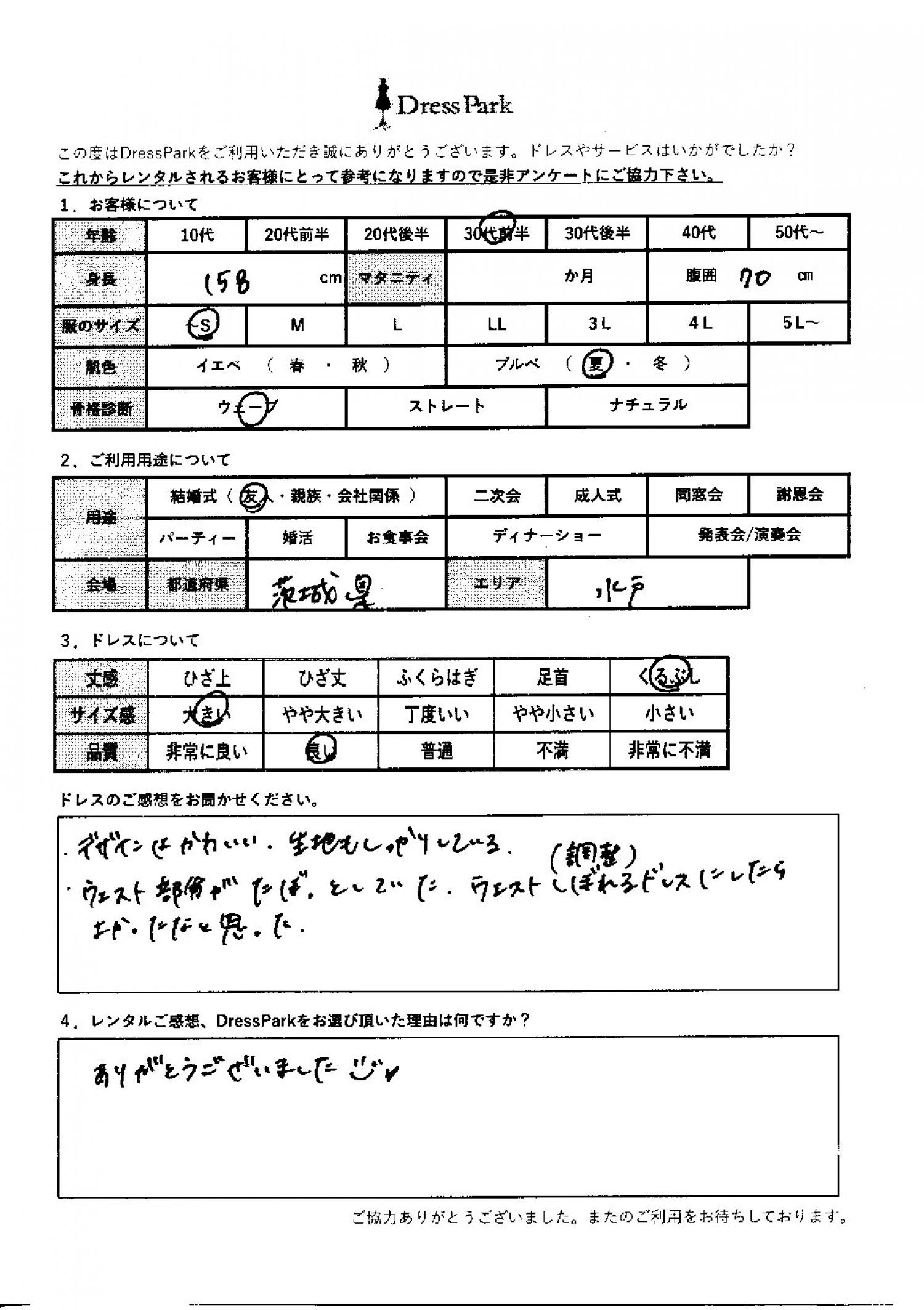 デザインはかわいい。生地もしっかりしている。ウェスト部分がだぼっとしていた。ウェスト絞れるドレスにしたらよかったなと思った。【スタッフより】