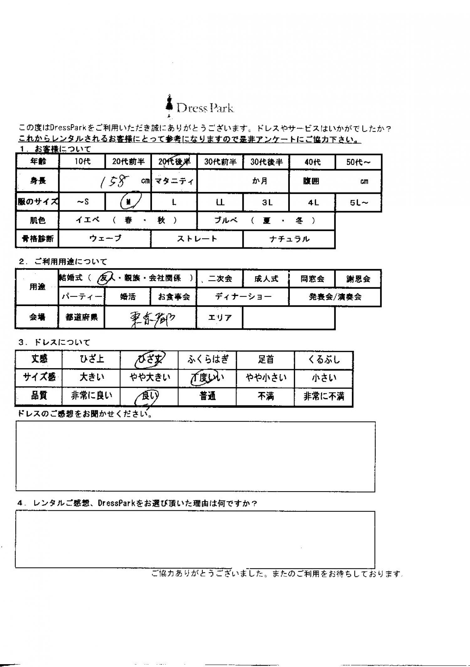東京都 Y.M様158㎝ Mサイズ
