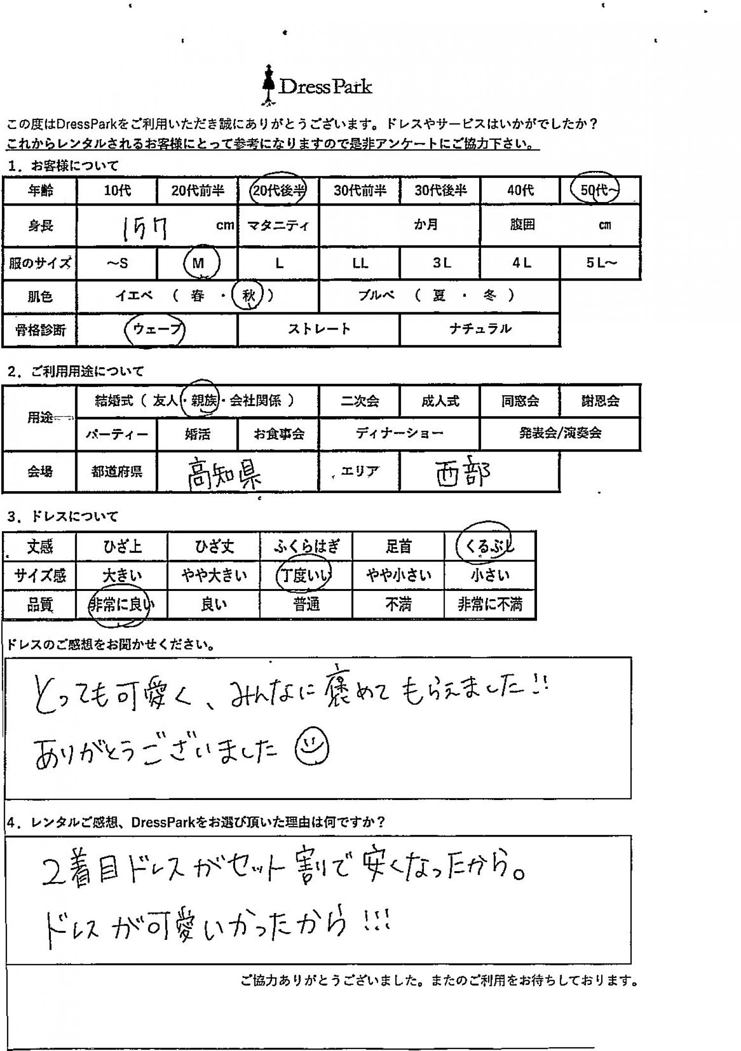 高知県 A.Y様157㎝ Mサイズ #20代#M/L#155~159㎝#結婚式(親族)#高知県 ◆レンタルしたドレスはこちら ◆レンタルしたサイズは:M ◆レンタルした日付:2025/10/13 ドレスの着用感 ◆点数: (5点) ◆丈感:くるぶし ◆サイズ感:丁度いい ◆品質:非常に良い ◆肌色:イエベ ◆骨格診断:ウェーブ ドレスの感想 とっても可愛く、みんなに褒めてもらえました!! ありがとうございました☺ レンタルのご感想、DressParkをお選び頂いた理由 2着目ドレスがセットで安くなったから。 ドレスが可愛かったから!!! CUSTOMER REVIEWS お客様の声 気になるカテゴリー別にご利用の感想をチェック! ◆AGE 年代で見る 10代 20代 30代 40代 50代~ ◆SIZE サイズで見る SS/S M/L 大きいサイズLL~ ◆HIGHT 身長で見る 140~149㎝ 150~154㎝ 155~159㎝ 160~164㎝ 165~169㎝ 170㎝以上 ◆マタニティ ~3か月 4~6か月 7~8か月 9~10か月 ◆肌色 イエベ ブルべ ◆骨格診断 ウェーブ ストレート ナチュラル ◆利用シーン 結婚式(友人) 結婚式(親族) 結婚式(会社関係) 二次会 成人式 謝恩会 パーティー その他 CUSTOMER REVIEWS都道府県別お客様の声 都道府県別にのお客様の声をチェック! 北海道 青森県 岩手県 宮城県 秋田県 山形県 福島県 茨城県 栃木県 群馬県 埼玉県 千葉県 東京都 神奈川県 新潟県 富山県 石川県 福井県 山梨県 長野県 岐阜県 静岡県 愛知県 三重県 滋賀県 京都府 大阪府 兵庫県 奈良県 和歌山県 鳥取県 島根県 岡山県 広島県 山口県 徳島県 香川県 愛媛県 高知県 福岡県 佐賀県 長崎県 熊本県 大分県 宮崎県 鹿児島県 沖縄県 CUSTOMER REVIEWSエリア別お客様の声 都道府県別にのお客様の声をチェック! 札幌 仙台 名古屋 軽井沢 金沢 神戸・芦屋 博多 那覇 梅田・新大阪 難波・心斎橋 鎌倉・湘南 横浜・みなとみらい 舞浜・浦安・幕張 大宮・浦和 青山・表参道 六本木・麻布 渋谷・恵比寿 新宿 池袋 銀座・丸の内 お台場・汐留 鹿児島市 郡山市 福島市 東予 甲府・石和 LINEでお問い合わせ このサイトではJavaScriptを使用しています