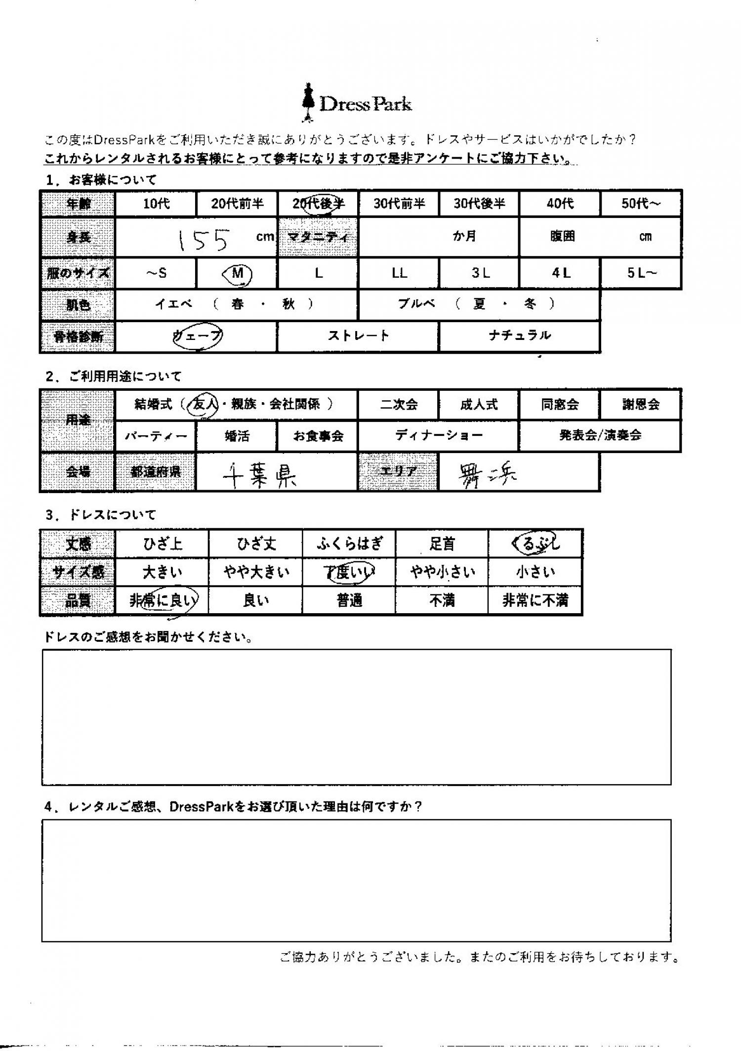 千葉県 H.S様155㎝ Mサイズ舞浜・浦安・幕張