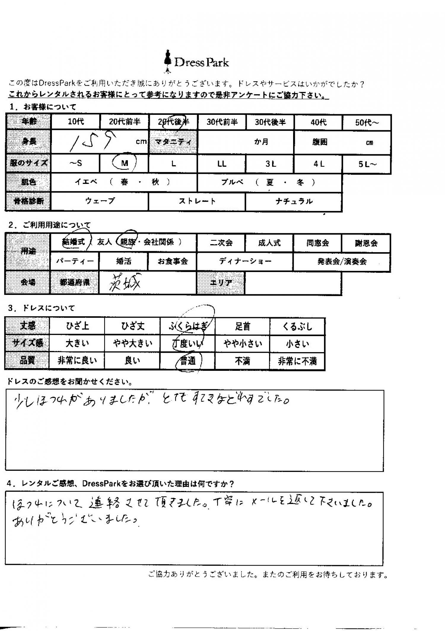 少しほつれがありましたが、とても素敵なドレスでした。レンタルのご感想、