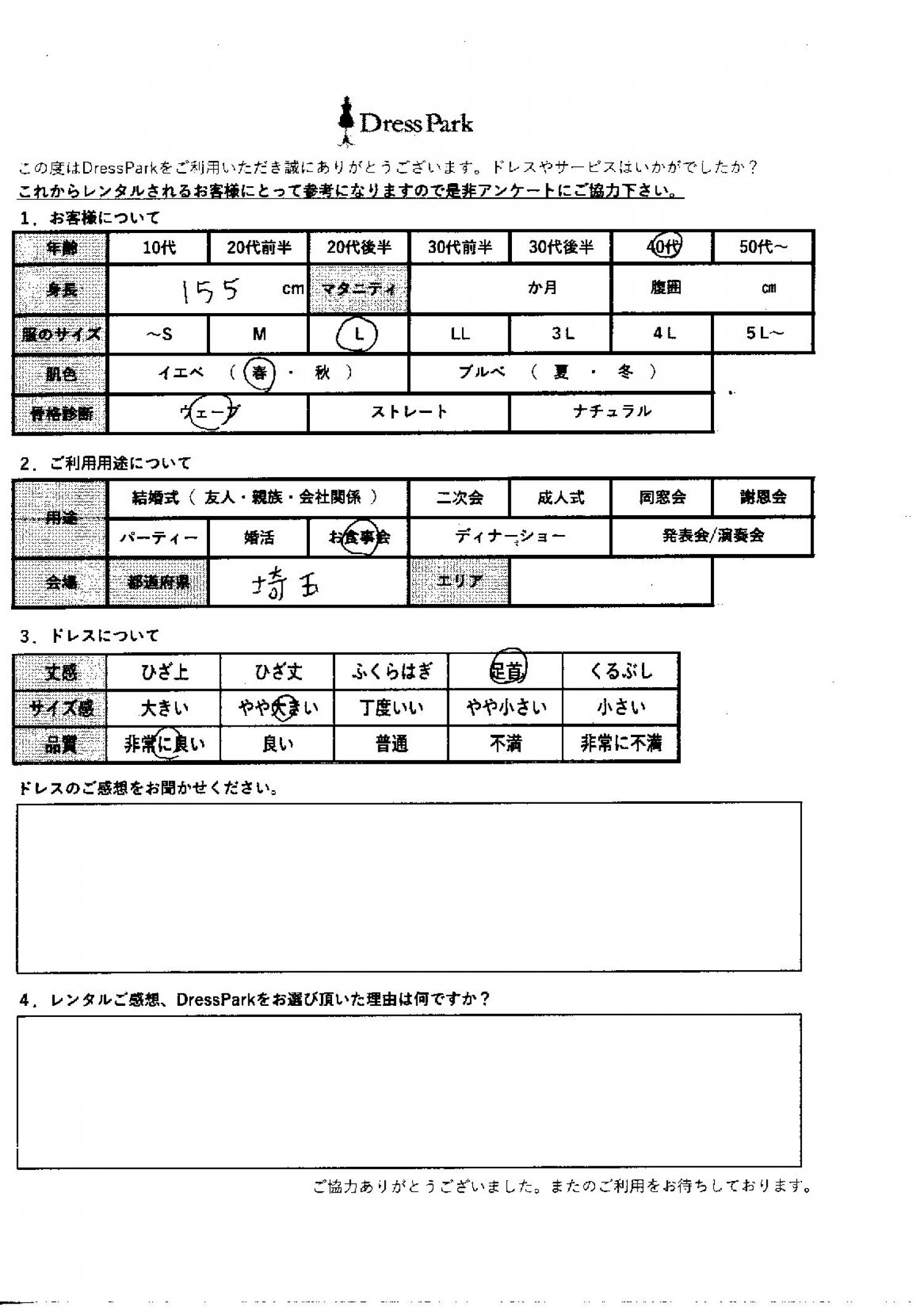 埼玉県 Y.U様155㎝ Lサイズ