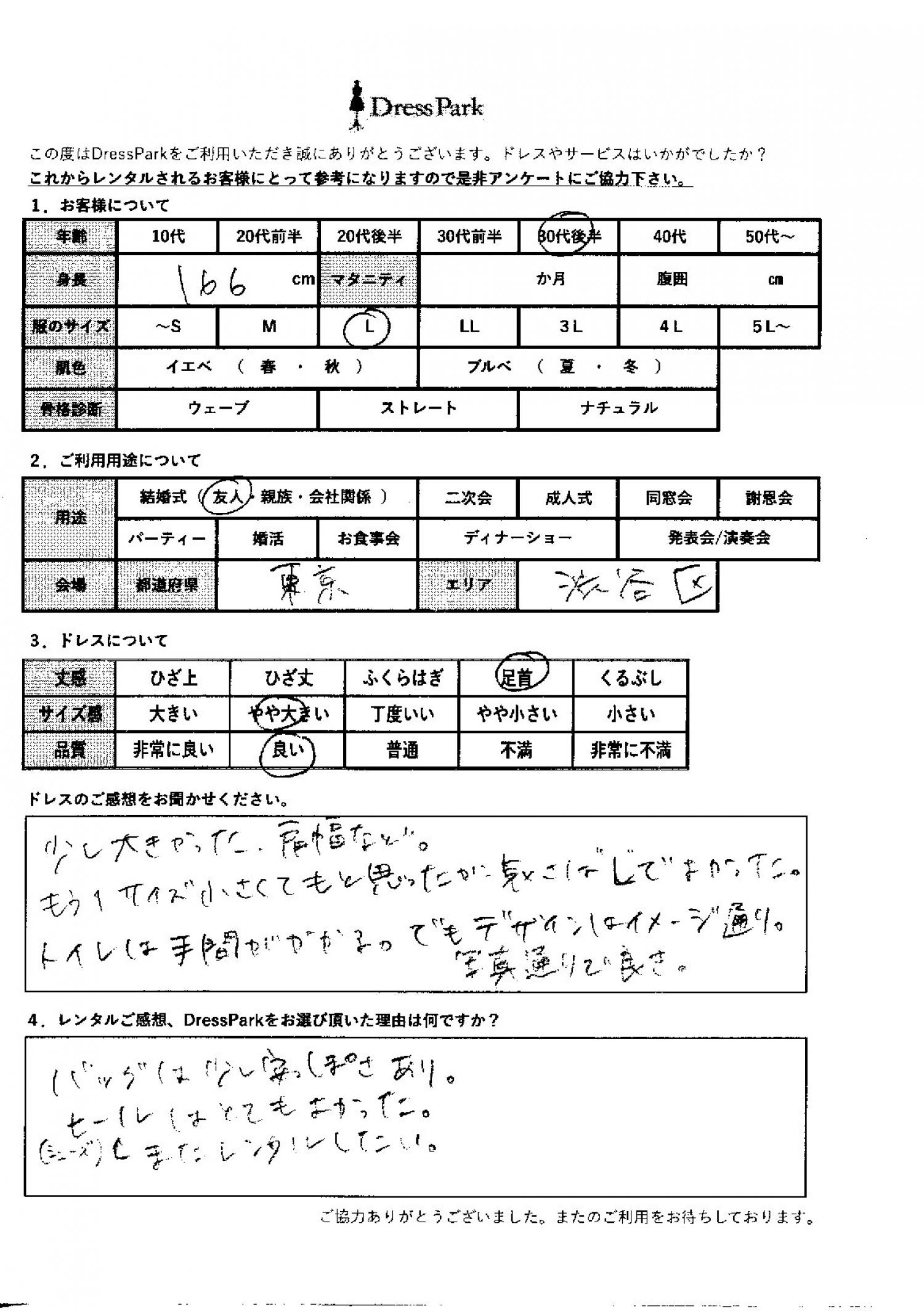 東京都 M.C様166㎝ Lサイズ渋谷・恵比寿 #30代#M/L#165~169㎝#結婚式(友人)#東京都#渋谷・恵比寿 ◆レンタルしたドレスはこちら ◆レンタルしたサイズは:L ◆レンタルした日付:2025/10/26 ドレスの着用感 ◆点数: (4点) ◆丈感:足首 ◆サイズ感:やや大きい ◆品質:良い ドレスの感想 少し大きかった、肩幅など。もうワンサイズ小さくてもと思ったが、Lサイズでよかった。トイレは手間がかかる。でもデザインはイメージ通り。写真通りで良き。 レンタルのご感想、DressParkをお選び頂いた理由 バッグは少し安っぽさあり。ヒールはとても良かった。またレンタルしたい。 CUSTOMER REVIEWS お客様の声 気になるカテゴリー別にご利用の感想をチェック! ◆AGE 年代で見る 10代 20代 30代 40代 50代~ ◆SIZE サイズで見る SS/S M/L 大きいサイズLL~ ◆HIGHT 身長で見る 140~149㎝ 150~154㎝ 155~159㎝ 160~164㎝ 165~169㎝ 170㎝以上 ◆マタニティ ~3か月 4~6か月 7~8か月 9~10か月 ◆肌色 イエベ ブルべ ◆骨格診断 ウェーブ ストレート ナチュラル ◆利用シーン 結婚式(友人) 結婚式(親族) 結婚式(会社関係) 二次会 成人式 謝恩会 パーティー その他 CUSTOMER REVIEWS都道府県別お客様の声 都道府県別にのお客様の声をチェック! 北海道 青森県 岩手県 宮城県 秋田県 山形県 福島県 茨城県 栃木県 群馬県 埼玉県 千葉県 東京都 神奈川県 新潟県 富山県 石川県 福井県 山梨県 長野県 岐阜県 静岡県 愛知県 三重県 滋賀県 京都府 大阪府 兵庫県 奈良県 和歌山県 鳥取県 島根県 岡山県 広島県 山口県 徳島県 香川県 愛媛県 高知県 福岡県 佐賀県 長崎県 熊本県 大分県 宮崎県 鹿児島県 沖縄県 CUSTOMER REVIEWSエリア別お客様の声 都道府県別にのお客様の声をチェック! 札幌 仙台 名古屋 軽井沢 金沢 神戸・芦屋 博多 那覇 梅田・新大阪 難波・心斎橋 鎌倉・湘南 横浜・みなとみらい 舞浜・浦安・幕張 大宮・浦和 青山・表参道 六本木・麻布 渋谷・恵比寿 新宿 池袋 銀座・丸の内 お台場・汐留 鹿児島市 郡山市 福島市 東予 甲府・石和 LINEでお問い合わせ このサイトではJavaScriptを使用しています