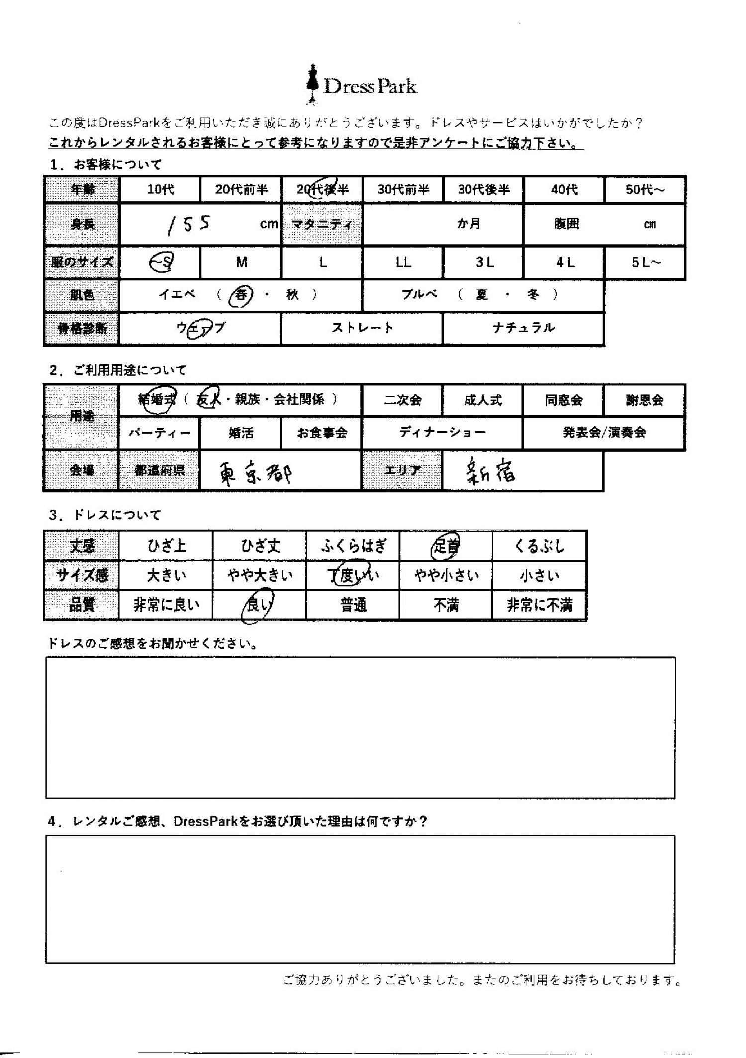 東京都 A.N様155㎝ ~Sサイズ新宿
