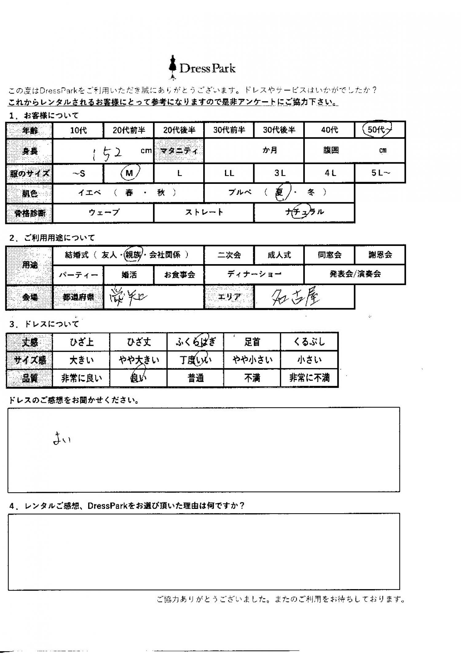愛知県 S.I様152㎝ Mサイズ名古屋