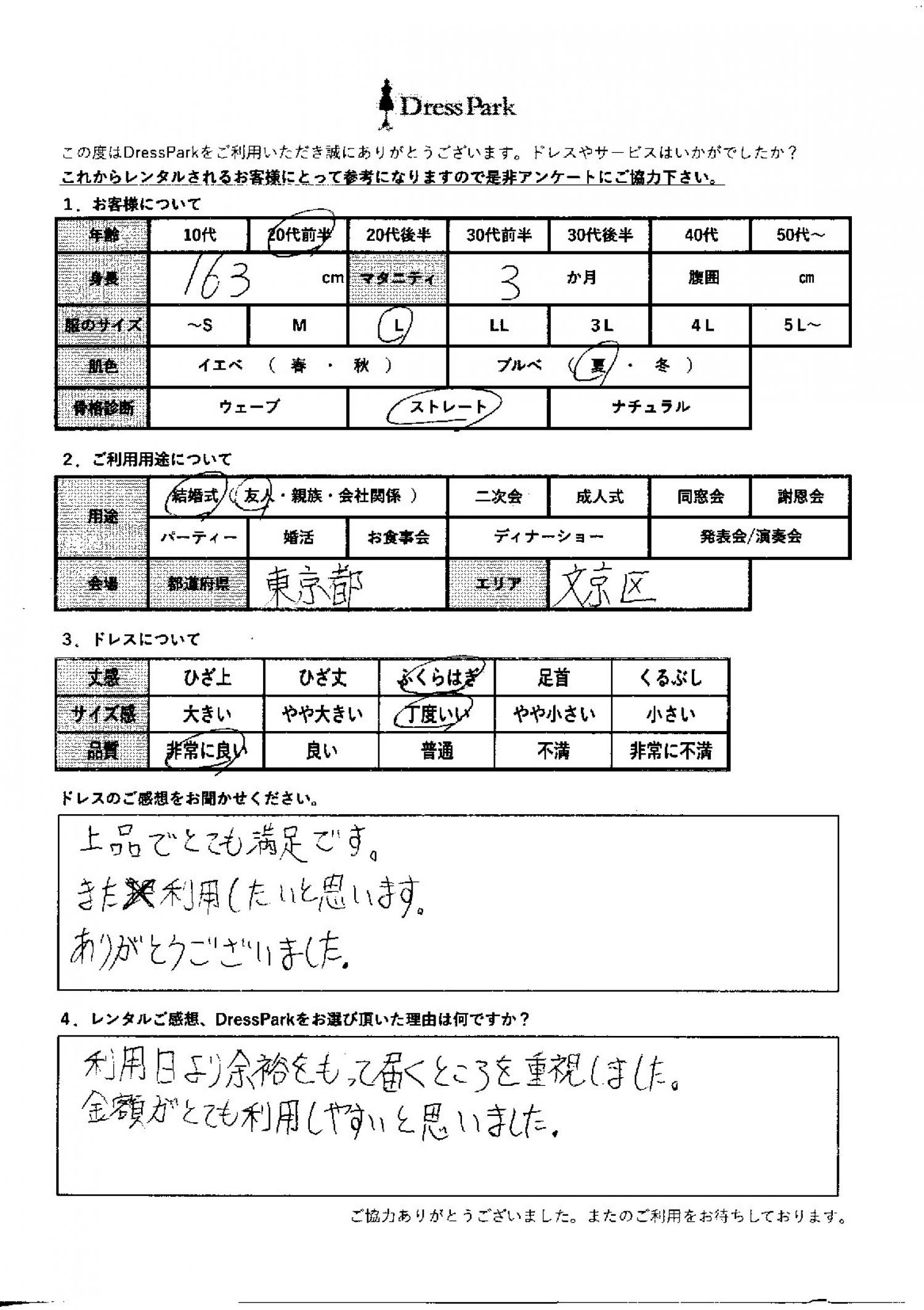 東京都 A.I様163㎝ Lサイズ マタニティ #20代#M/L#160~164㎝#結婚式(友人)#東京都 ◆レンタルしたドレスはこちら ◆レンタルしたサイズは:L ◆レンタルした日付:2025/11/01 ドレスの着用感 ◆点数: (5点) ◆丈感:ふくらはぎ ◆サイズ感:丁度いい ◆品質:非常に良い ◆マタニティ: ◆肌色:ブルべ ◆骨格診断:ストレート ドレスの感想 上品でとても満足です。また利用したいと思います。ありがとうございました。 レンタルのご感想、DressParkをお選び頂いた理由 利用日より余裕を持って届くところを重視しました。金額がとても利用しやすいと思いました。 CUSTOMER REVIEWS お客様の声 気になるカテゴリー別にご利用の感想をチェック! ◆AGE 年代で見る 10代 20代 30代 40代 50代~ ◆SIZE サイズで見る SS/S M/L 大きいサイズLL~ ◆HIGHT 身長で見る 140~149㎝ 150~154㎝ 155~159㎝ 160~164㎝ 165~169㎝ 170㎝以上 ◆マタニティ ~3か月 4~6か月 7~8か月 9~10か月 ◆肌色 イエベ ブルべ ◆骨格診断 ウェーブ ストレート ナチュラル ◆利用シーン 結婚式(友人) 結婚式(親族) 結婚式(会社関係) 二次会 成人式 謝恩会 パーティー その他 CUSTOMER REVIEWS都道府県別お客様の声 都道府県別にのお客様の声をチェック! 北海道 青森県 岩手県 宮城県 秋田県 山形県 福島県 茨城県 栃木県 群馬県 埼玉県 千葉県 東京都 神奈川県 新潟県 富山県 石川県 福井県 山梨県 長野県 岐阜県 静岡県 愛知県 三重県 滋賀県 京都府 大阪府 兵庫県 奈良県 和歌山県 鳥取県 島根県 岡山県 広島県 山口県 徳島県 香川県 愛媛県 高知県 福岡県 佐賀県 長崎県 熊本県 大分県 宮崎県 鹿児島県 沖縄県 CUSTOMER REVIEWSエリア別お客様の声 都道府県別にのお客様の声をチェック! 札幌 仙台 名古屋 軽井沢 金沢 神戸・芦屋 博多 那覇 梅田・新大阪 難波・心斎橋 鎌倉・湘南 横浜・みなとみらい 舞浜・浦安・幕張 大宮・浦和 青山・表参道 六本木・麻布 渋谷・恵比寿 新宿 池袋 銀座・丸の内 お台場・汐留 鹿児島市 郡山市 福島市 東予 甲府・石和 LINEでお問い合わせ このサイトではJavaScriptを使用しています
