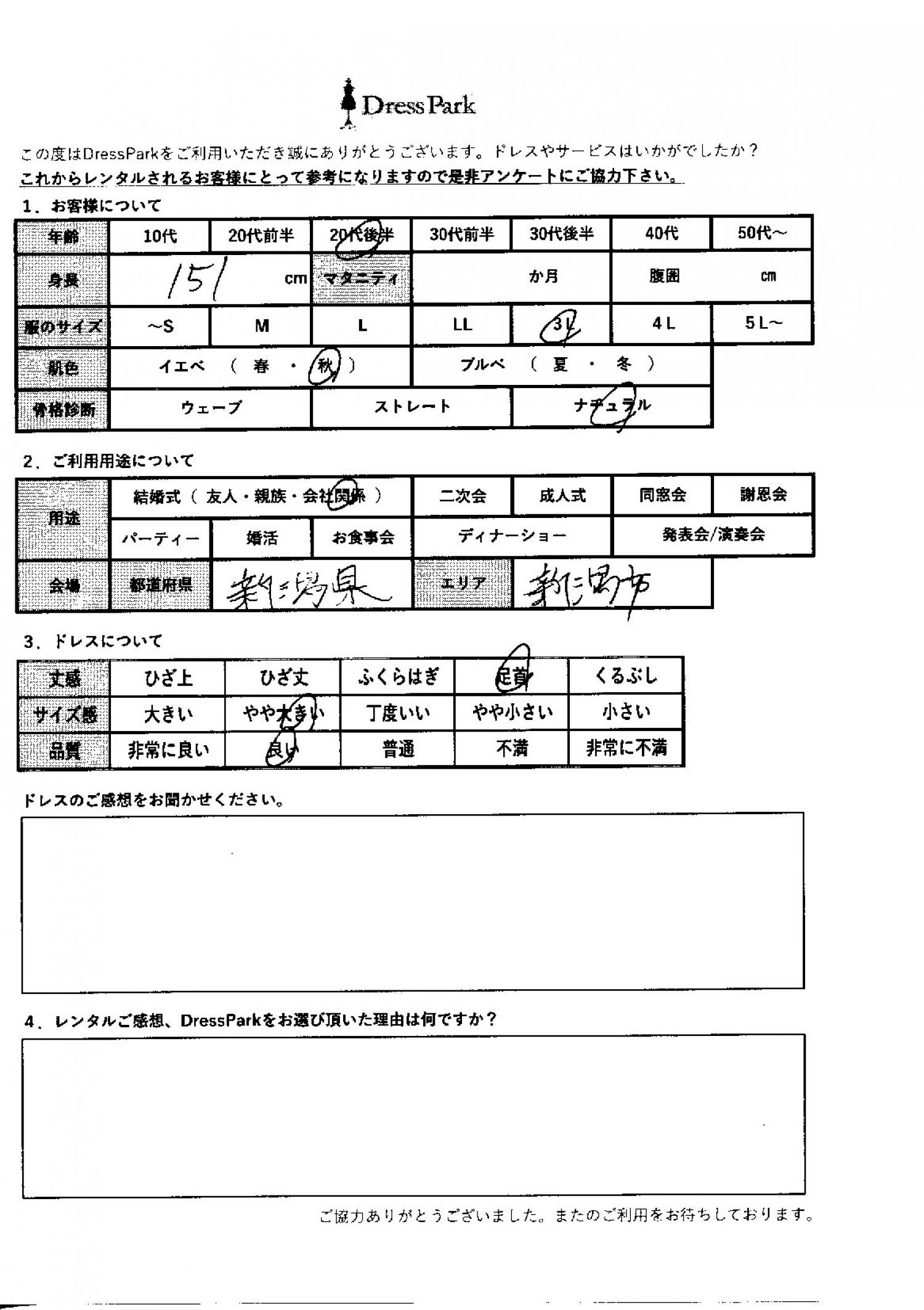 新潟県 S.I様151㎝ 3Lサイズ