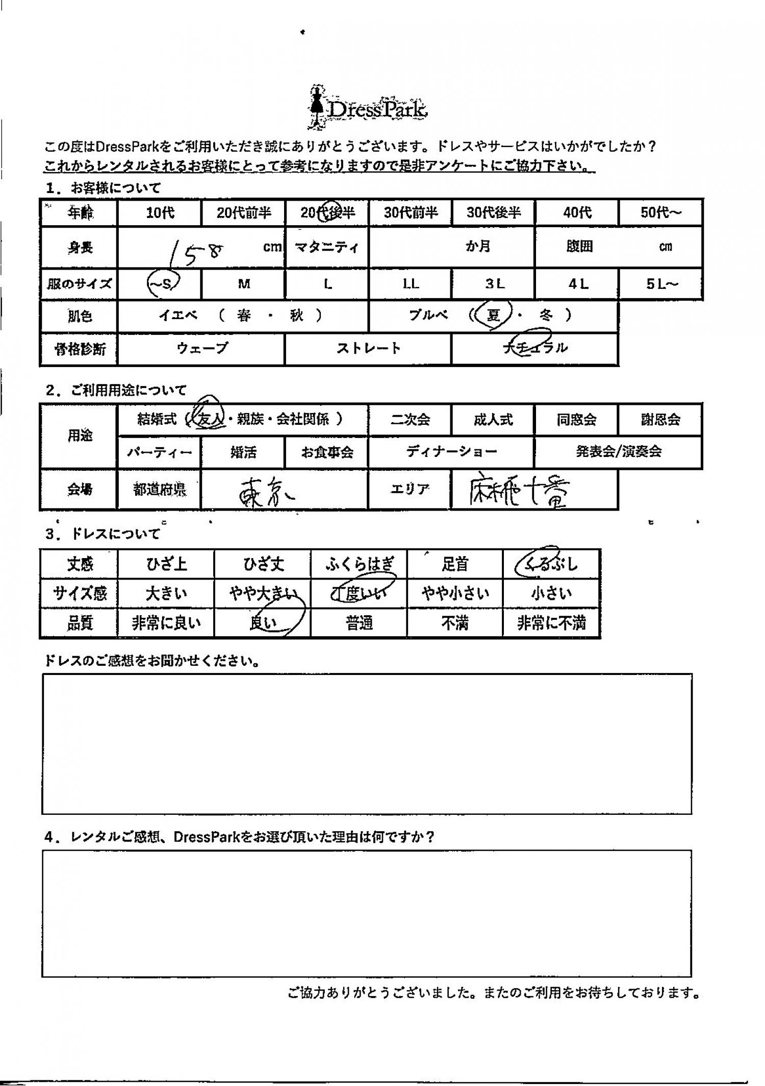 東京都 E.I様158㎝ ~Sサイズ六本木・麻布