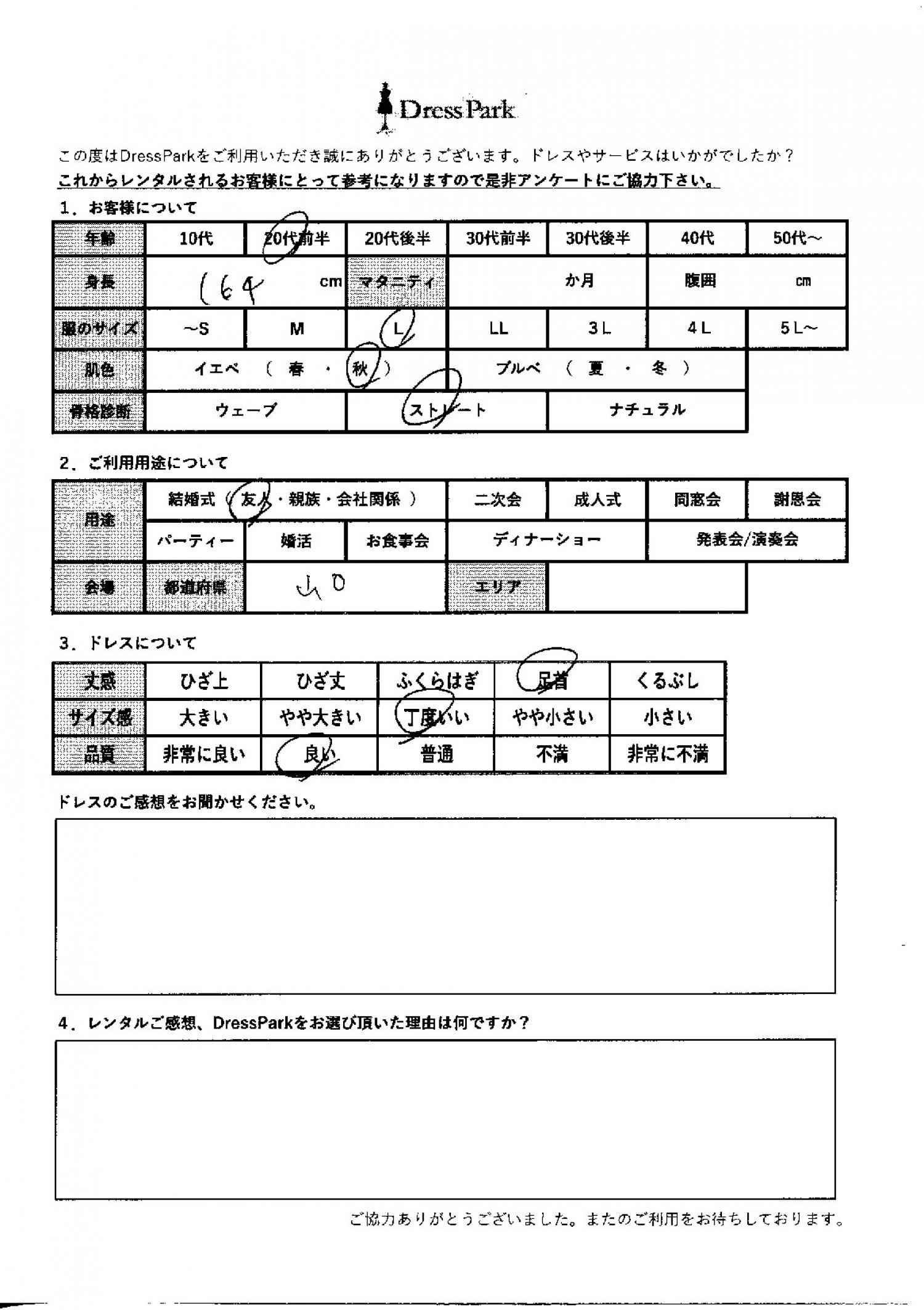 山口県 A.I様164㎝ Lサイズ